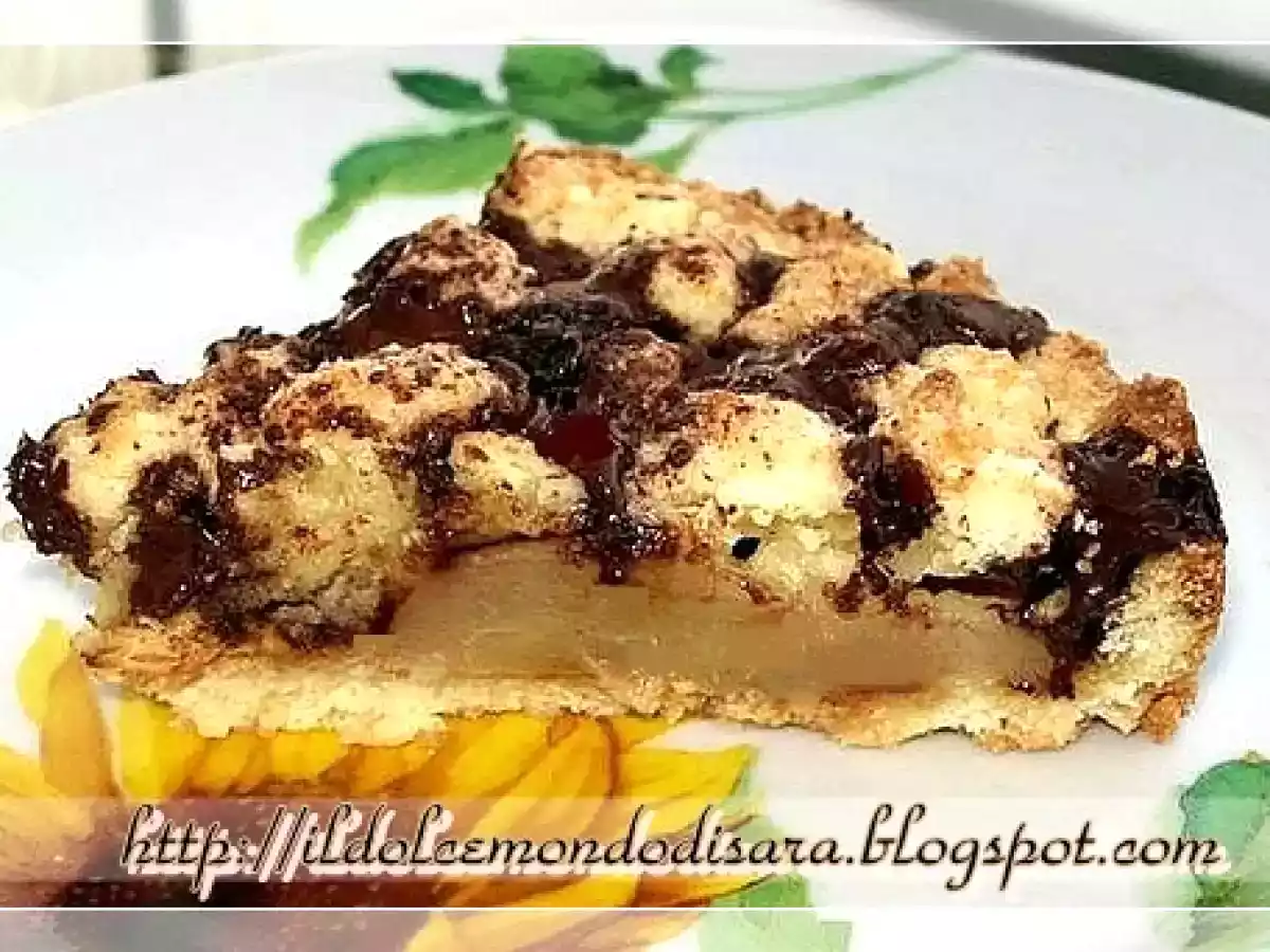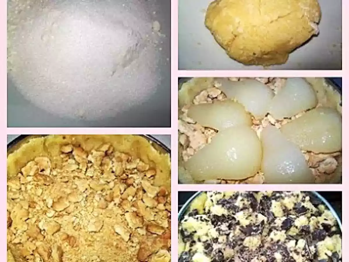 Crostata con cioccolato e pere di anna moroni PrecedenteProssimo Portata principalemedia1 h 30 m553 Kcal Invia questa ricetta ad un amico Stampa la ricetta Contatta l'autore della Ricetta Pubblica la foto di questa ricetta Provate questa nuova ricetta che può essere fatto in qualsiasi momento. Ingredienti 8 Per la pasta: 300 g di farina 150 g di zucchero 1 cucchiaino di lievito in polvere 3 tuorli d'uovo 150 g di burro Scorza di un limone Ripieno: 2 pere 10 amaretti sbriciolati a mano (o più cookie a vostra scelta) 100g di cioccolato fondente tritato