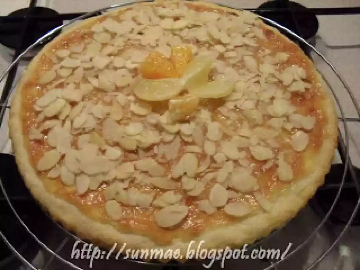 Crostata frangipane e limoni vota adesso PrecedenteProssimo Portata principalefacile30 min Invia questa ricetta ad un amico Stampa la ricetta Contatta l'autore della Ricetta Pubblica la foto di questa ricetta Ingredienti 6 per la pasta frolla: 300g di farina 00 100g di zucchero semolato 100g di burro 2 uova 1 pizzico di sale per la crema pasticcera: 250 ml di lattemezza bacca di vaniglia 75gr di zucchero 3 tuorli di uova 20g di maizena per il frangipane: 200g di burro200g di zucchero a velo 200g di farina di mandorle 3 uova 1 bicchierino di fiori di arancio 400g di crema pasticcera Per la finitura: Fiordifrutta limoni della * Rigoni di Asiago Scaglie di mandorle