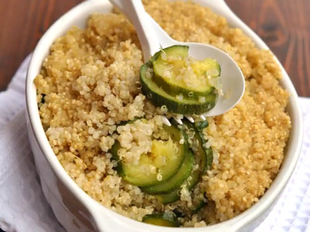 Crumble di quinoa PrecedenteProssimo Portata principalefacile35 min255 Kcal Invia questa ricetta ad un amico Stampa la ricetta Contatta l'autore della Ricetta Pubblica la foto di questa ricetta Ingredienti 2 200 g di quinoa 3 Zucchine 1 Cipollotto fresco Olio extravergine d'oliva Sale e pepe Costo stimato: 3.74Euros€ (1.87€/Porzioni)