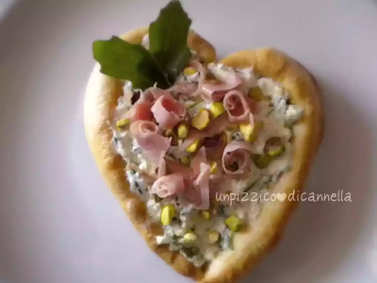 Cuore di sfoglia, philadeplhia mortadella e pistacchi