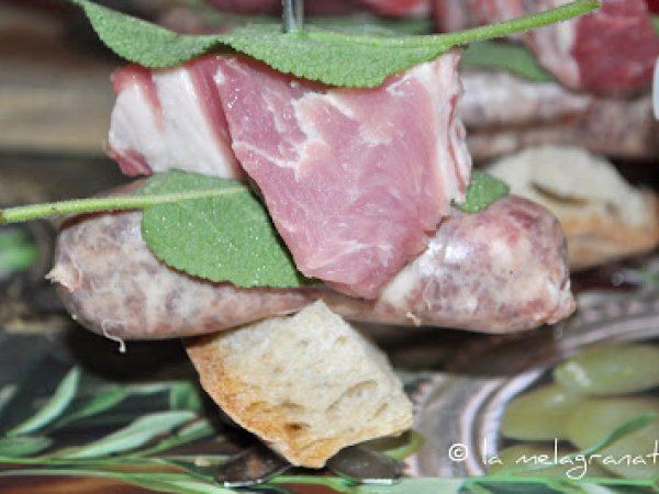 - E poi via via gli altri ingredienti, aromatizzati da una foglia di salvia, tra l'uno e l'altro.