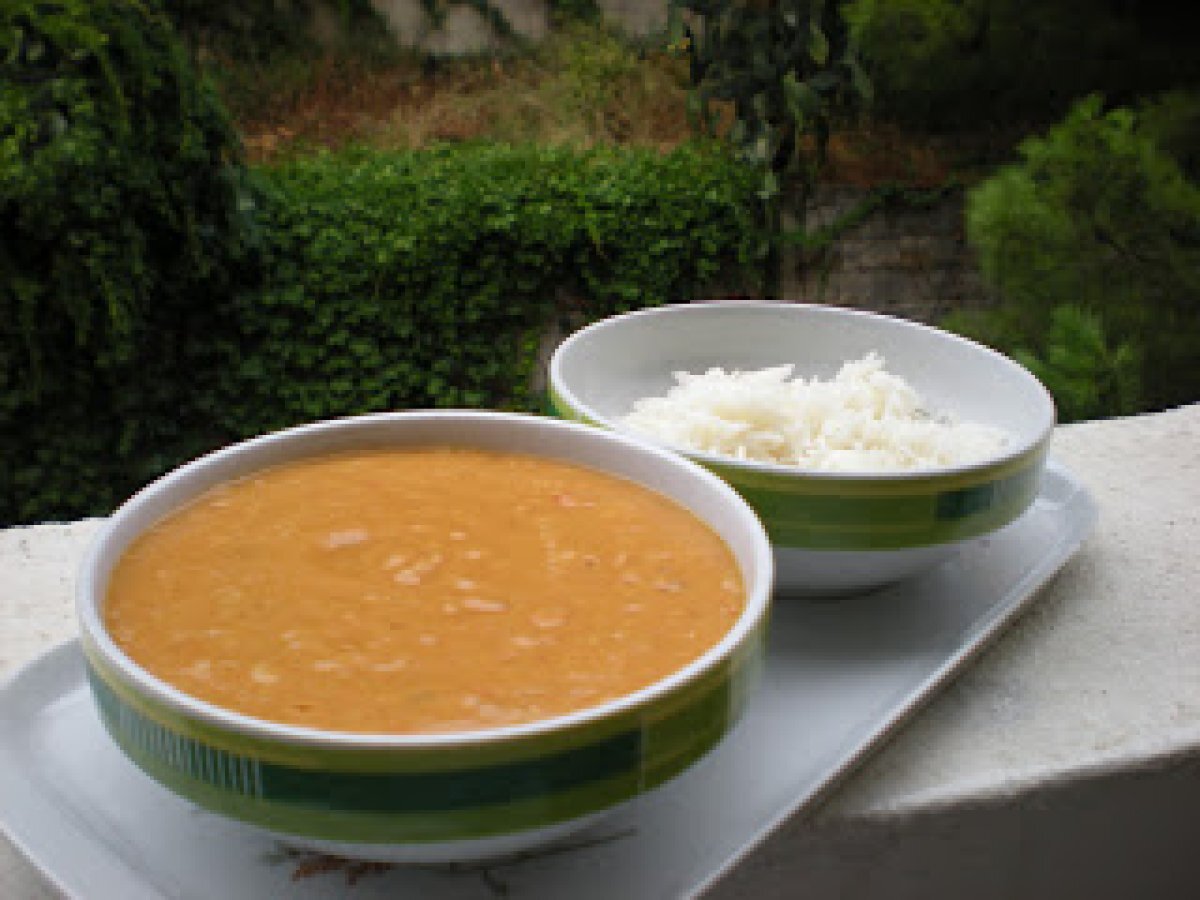 Dahl (zuppa indiana di lenticchie rosse) PrecedenteProssimo Portata principalefacile1 ora Invia questa ricetta ad un amico Stampa la ricetta Contatta l'autore della Ricetta Pubblica la foto di questa ricetta Ingredienti 4 2 pugni di lenticchie rosse decorticate 1 cipollina 1/2 spicchio d aglio 1/2 stecca di canella 2 bacche di cardamomo 1/2 cucchiaino di cumino 1/2 cucchiaino di curcuma 1/2 cucchiaino di tamarindo 1/2 peperoncino 1 pomodoro 1 cucchiaino di dado vegetale fatto in casa per il Tarkan: 2 cucchiaini semi di senape 3foglie di curry olio di colza per il riso: 1 tazzina di caffè di riso basmati sale