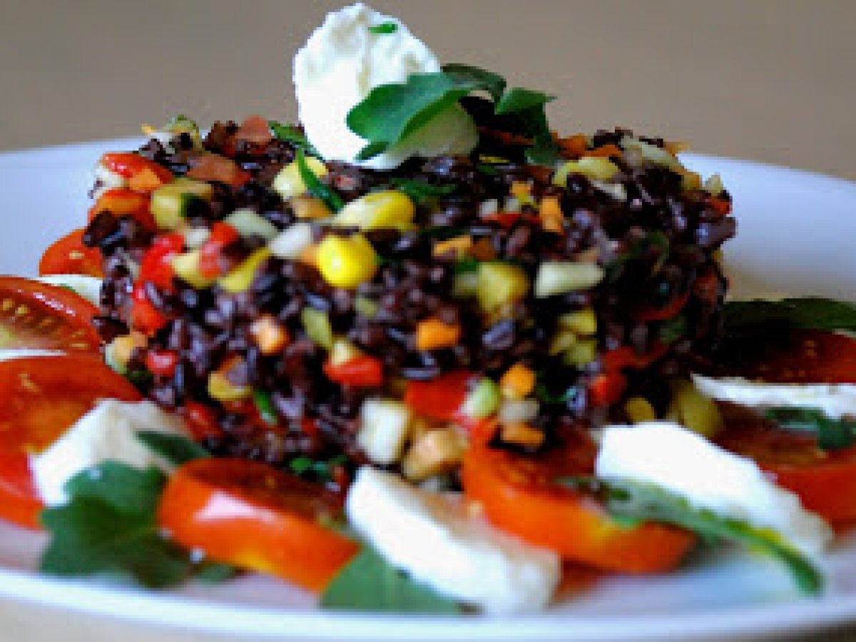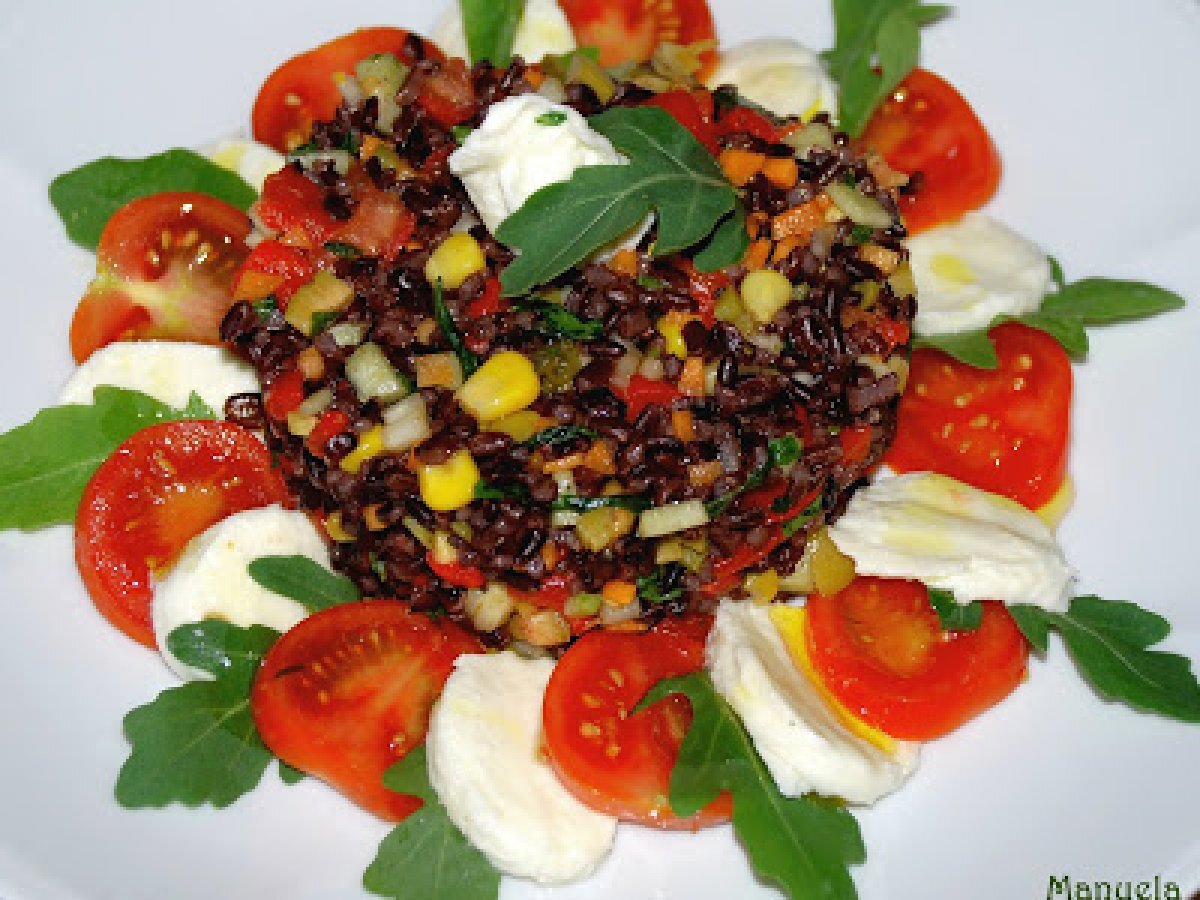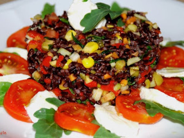 Doppia insalata....riso venere con caprese. PrecedenteProssimo Portata principalefacile50 min515 Kcal Invia questa ricetta ad un amico Stampa la ricetta Contatta l'autore della Ricetta Pubblica la foto di questa ricetta Questi ricette estidéal per insalate e piatti freddi. Ingredienti 2 Peperoni grigliati Fagiolini sbollentati carota sedano mais cipolla di tropea olive verdi cetriolo rucola pomodori secchi sott'olio pomodorini basilico abbondante sale olio pepe mozzarelline