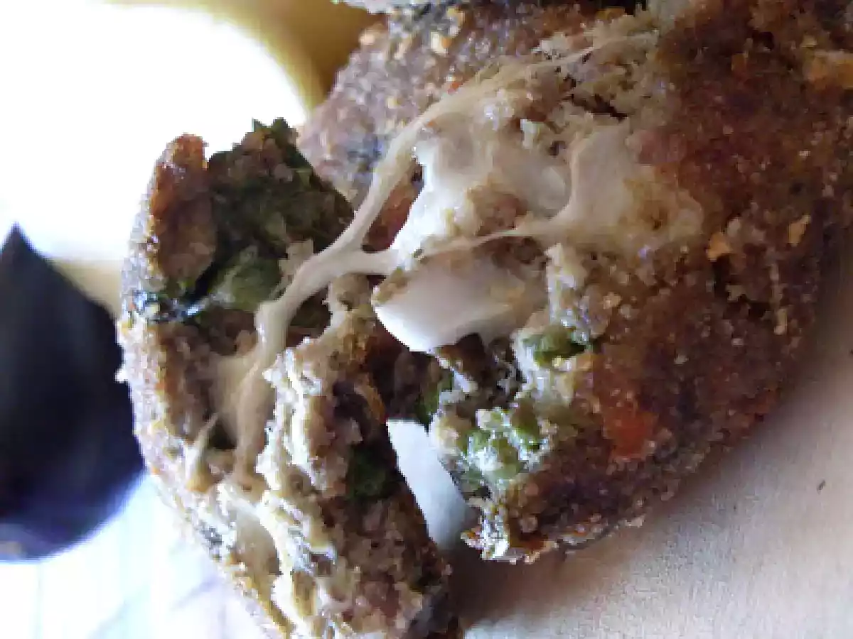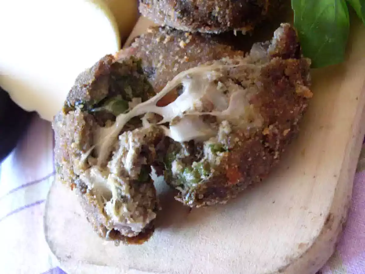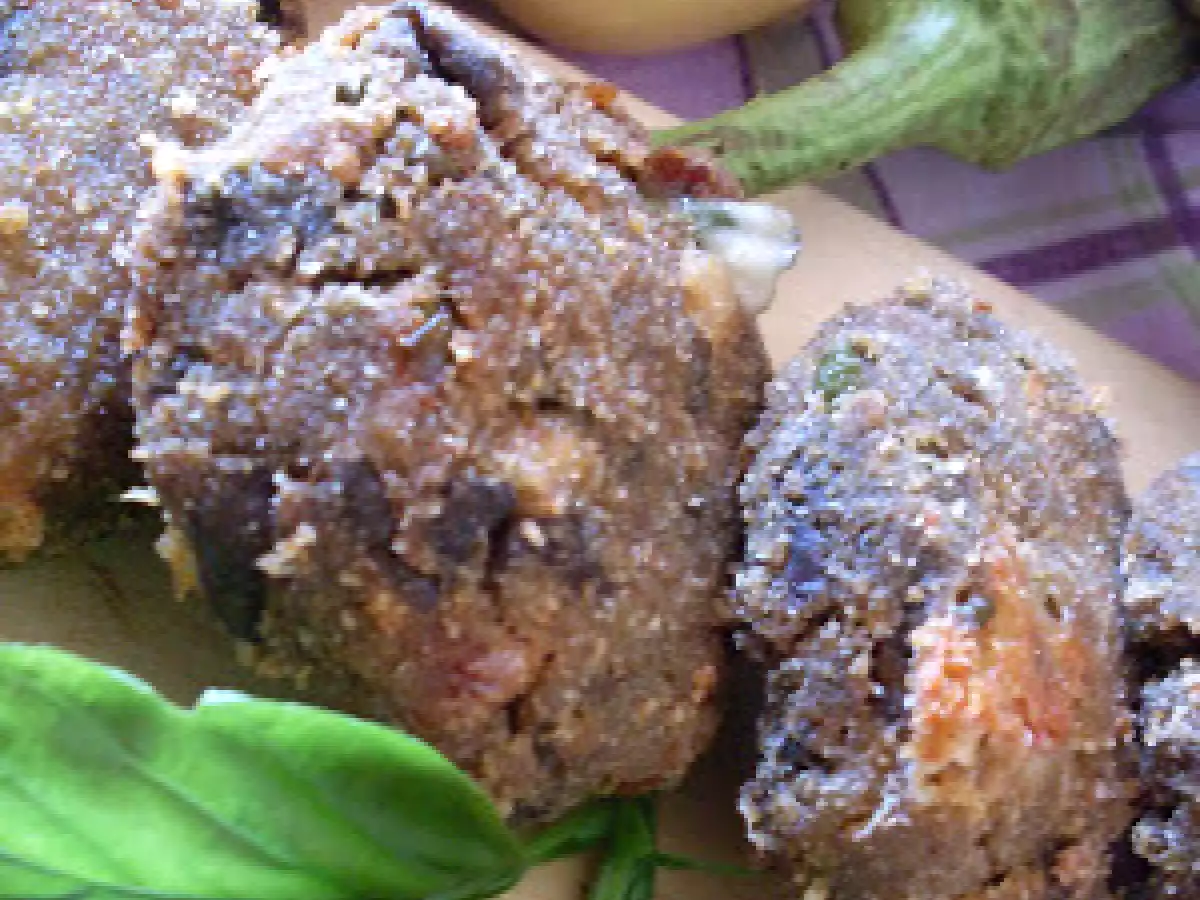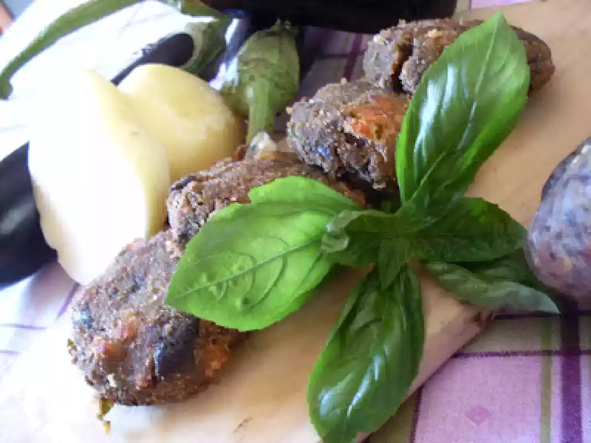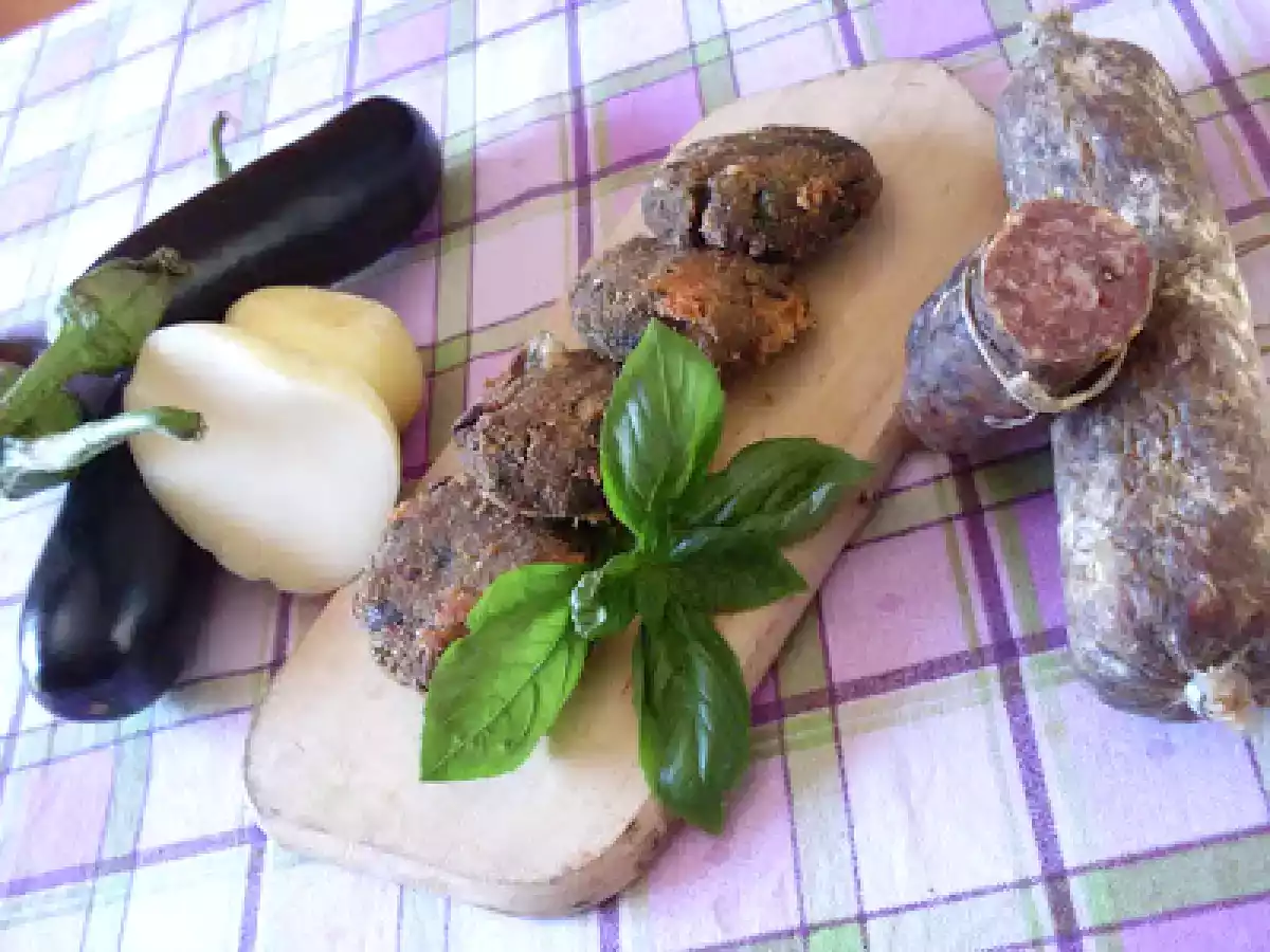 'e pizzelle 'e mulignane... ovvero crocchette di melanzane saporite! PrecedenteProssimo Portata principalefacile35 min280 Kcal Invia questa ricetta ad un amico Stampa la ricetta Contatta l'autore della Ricetta Pubblica la foto di questa ricetta Ingredienti 4 Melanzane salame napoletano mozzarella o scamorza fresca pecorino romano grattugiato pane grattugiato uova aglio tritato abbondante basilico Costo stimato: 4.2Euros€ (1.05€/Porzioni)