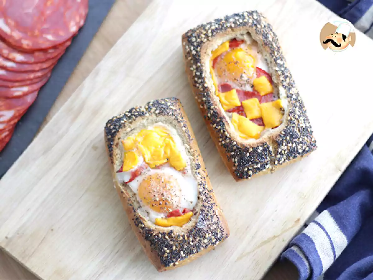 Ho usato panini bianchi mozzarella e pancetta arrotolata ,un fiocco di burro al posto della panna italianizzando al massimo