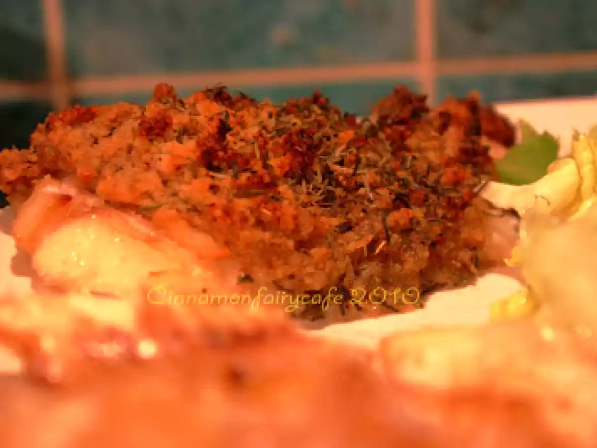 Eglefino al forno in crosta di erbe aromatiche Portata principalemedia35 min Invia questa ricetta ad un amico Stampa la ricetta Contatta l'autore della Ricetta Pubblica la foto di questa ricetta Ingredienti 4 1 filetto di eglefino a persona Il succo di 1 limone Timo Maggiorana Pangrattato Olio evo Sale Pepe