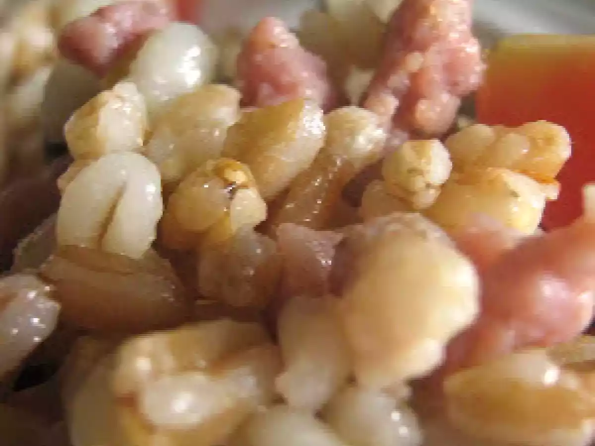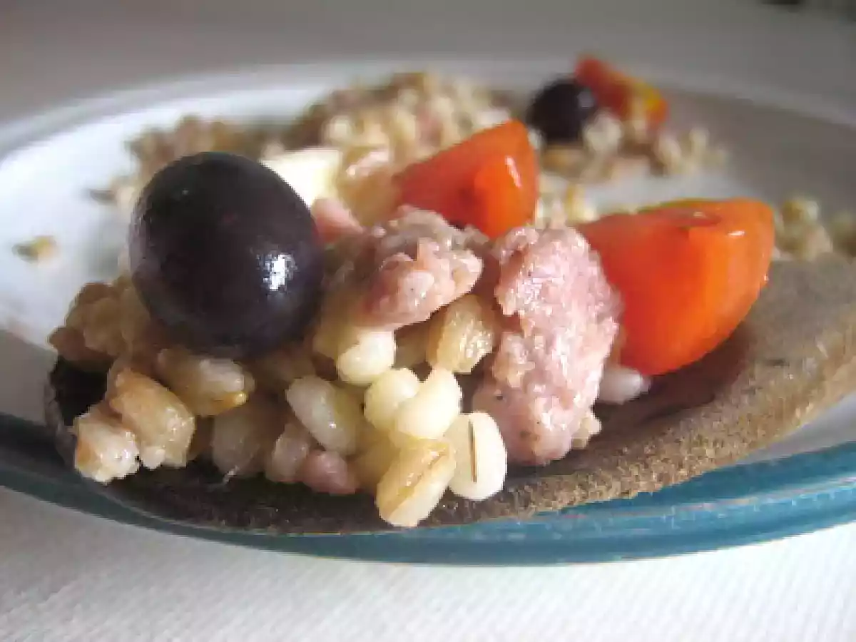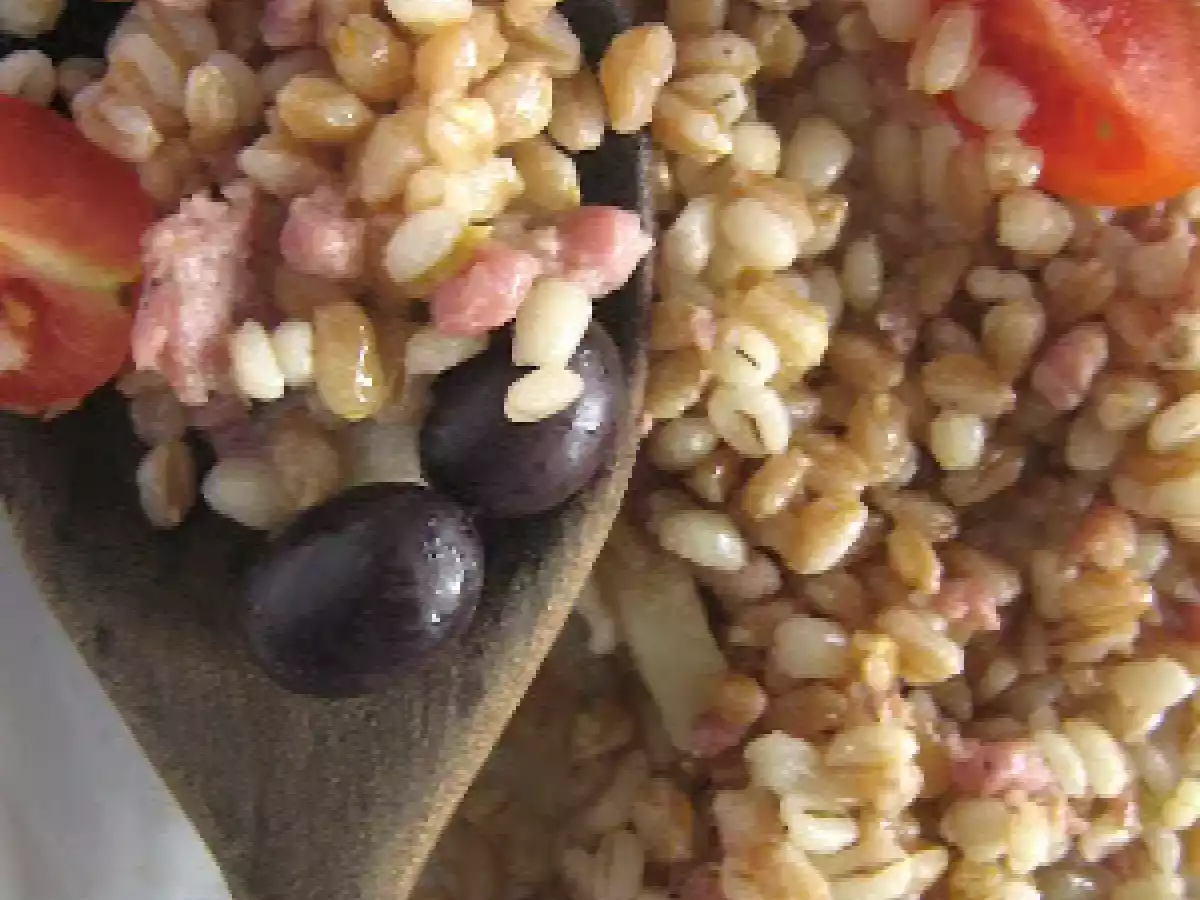 Farro e salsiccia per sportivi della poltrona PrecedenteProssimo Portata principalefacile40 min Invia questa ricetta ad un amico Stampa la ricetta Contatta l'autore della Ricetta Pubblica la foto di questa ricetta Ingredienti 5 600 g tra farro e orzo 4 salsicce toscane una decina di pomdorini olive due fette di caciotta toscana Pienza un cipollotto olio extravergine d'oliva sale