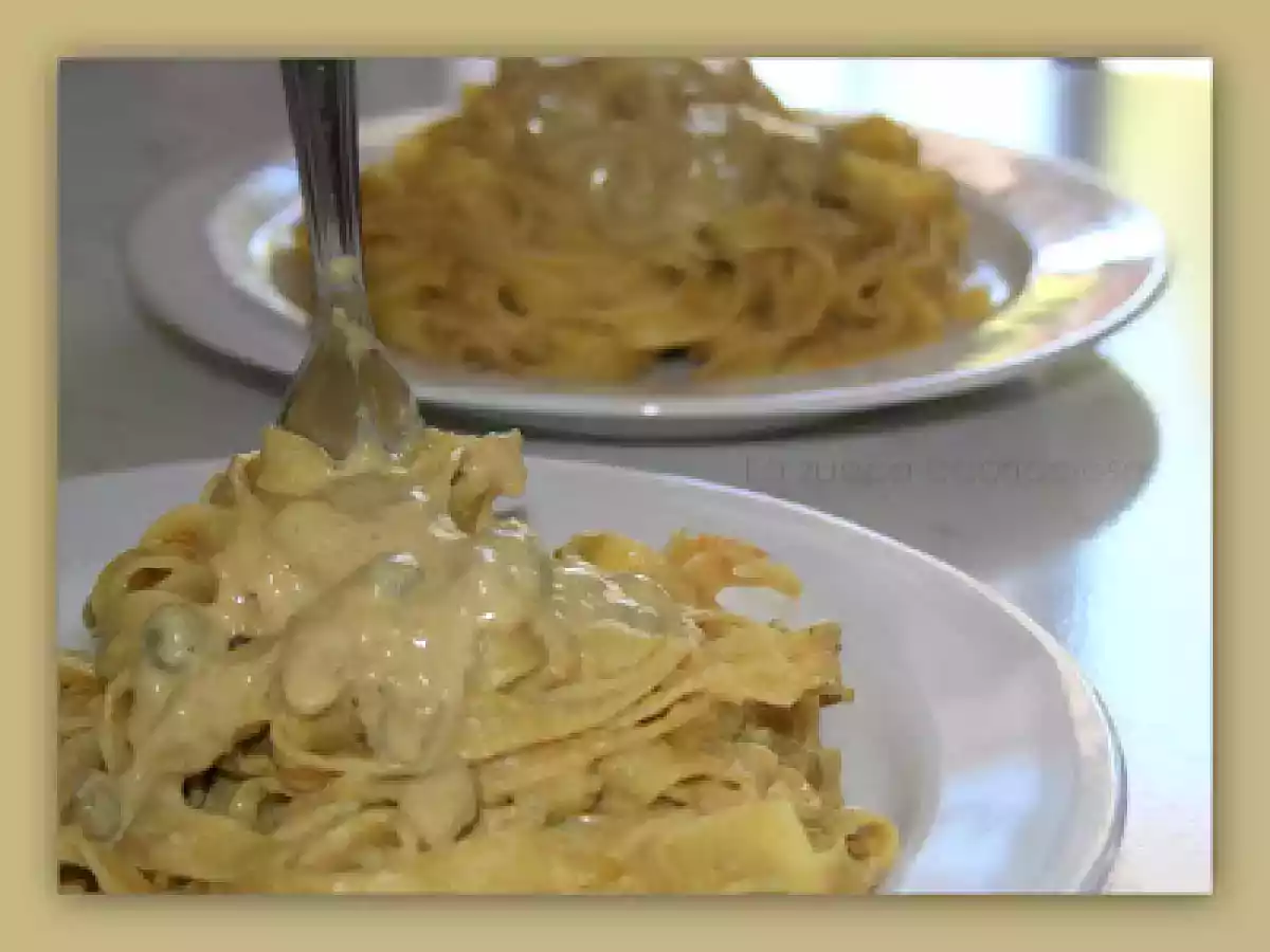 Fettuccine al tonno in crema di piselli e paprika Portata principalefacile30 min Invia questa ricetta ad un amico Stampa la ricetta Contatta l'autore della Ricetta Pubblica la foto di questa ricetta Ingredienti 4 300 g di fettuccine all'uovo 1 scatoletta di tonno sott'olio da 80 g 1 scatola di piselli da 410 g 1 cucchiaio di Orto in busta Ariosto 1 confezione di panna da cucina paprika a piacere pepe olio