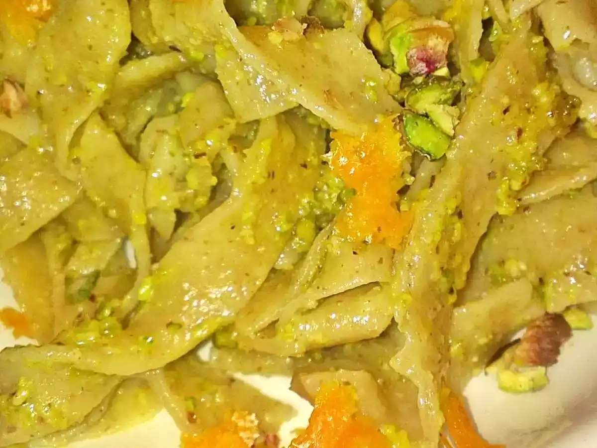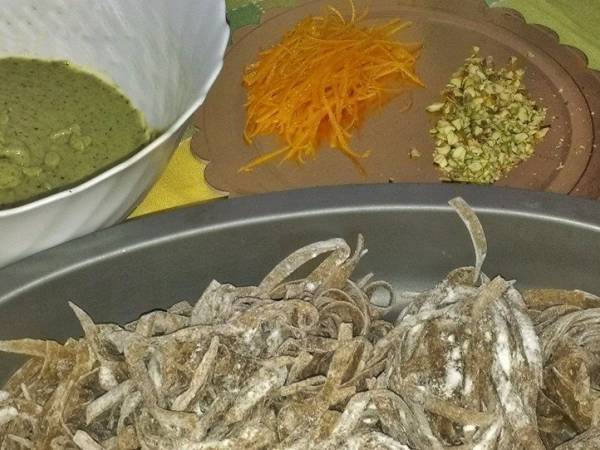 Mi sfizia aprire la tavola al pistacchio, mirando ben oltre la sfera dello snack. Quindi ecco il favoloso primo piatto di pasta fatta in casa, profumatissimo con i cibi della mia terra padre: la sicilia.
