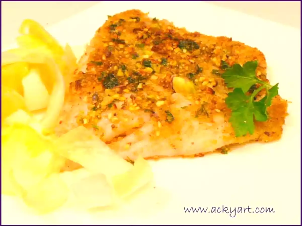 Filetti di persico in crosta di pistacchi Portata principalefacile1 ora422 Kcal Invia questa ricetta ad un amico Stampa la ricetta Contatta l'autore della Ricetta Pubblica la foto di questa ricetta Ingredienti 4 400 g di filetti di persico 50 g di pistacchi 100 g di pan grattato qualche rametto di prezzemolo olio extravergine di oliva q.b. Costo stimato: 5.01Euros€ (1.25€/Porzioni)