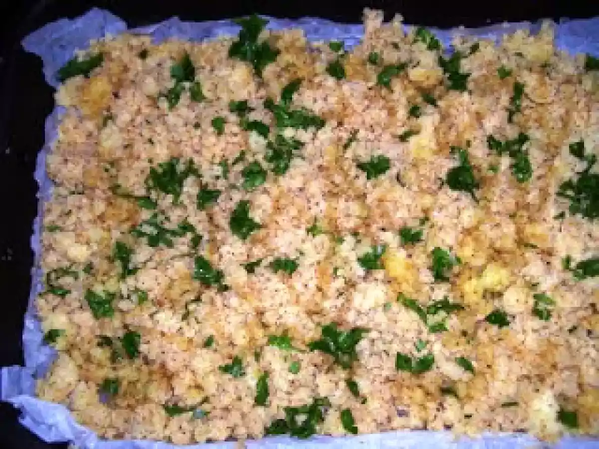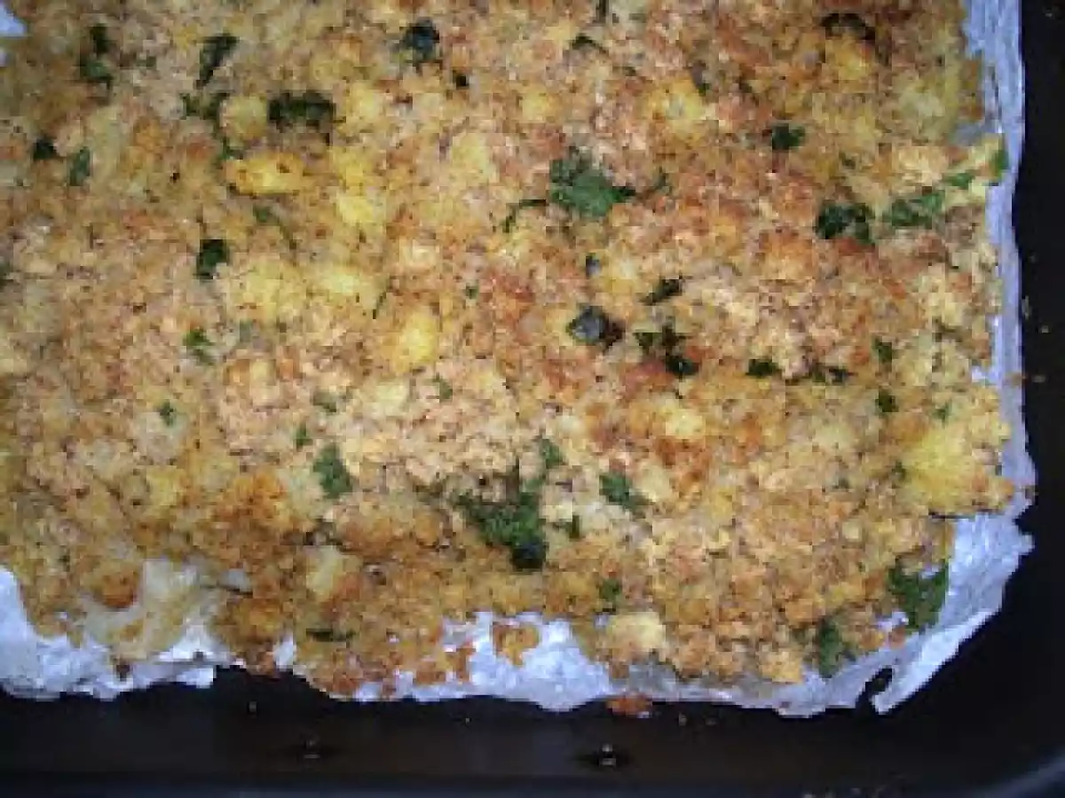 Filetti di platessa con briciole di patate PrecedenteProssimo Portata principalefacile50 min576 Kcal Invia questa ricetta ad un amico Stampa la ricetta Contatta l'autore della Ricetta Pubblica la foto di questa ricetta Ingredienti 2 6 filetti di platessa 4 patate di media grandezza sale e pepe olio pangrattato prezzemolo timo Costo stimato: 6.12Euros€ (3.06€/Porzioni)