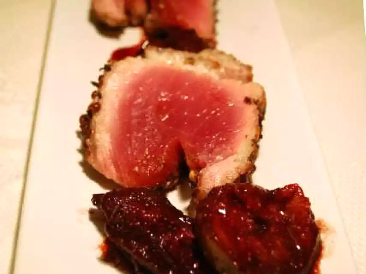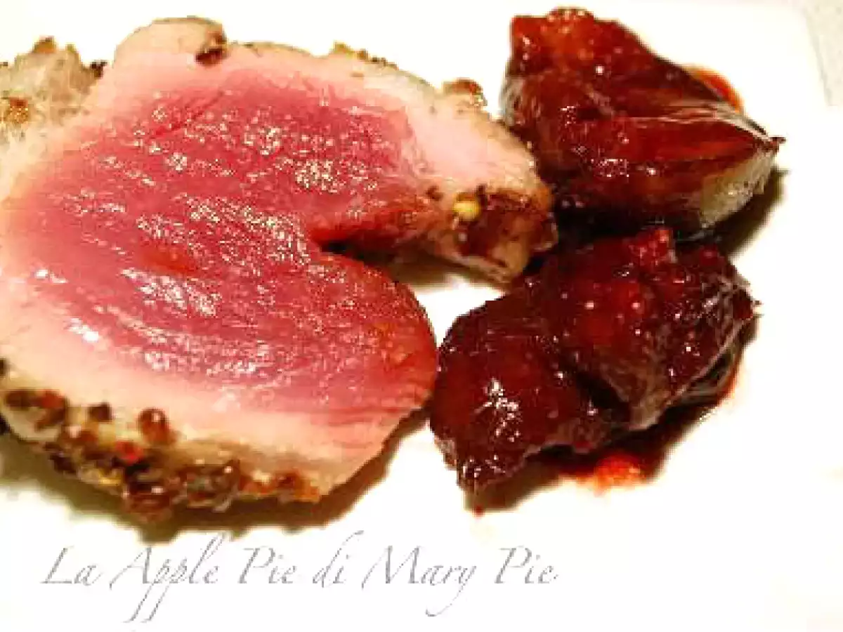 Filetto di cinta rosato e fichi glassati PrecedenteProssimo Portata principalefacile30 min Invia questa ricetta ad un amico Stampa la ricetta Contatta l'autore della Ricetta Pubblica la foto di questa ricetta Ingredienti 4 500 g filetto di cinta senese (o di maiale) 4 cucchiai olio extravergine di oliva 2 spicchi d'aglio in camicia (=non sbucciati) 2 foglie d'alloro pepe di Zhichuan sale 6 fichi rossi 1 bicchiere di Amarone della Valpolicella 1 noce burro 1 cucchiaino zucchero di canna sale