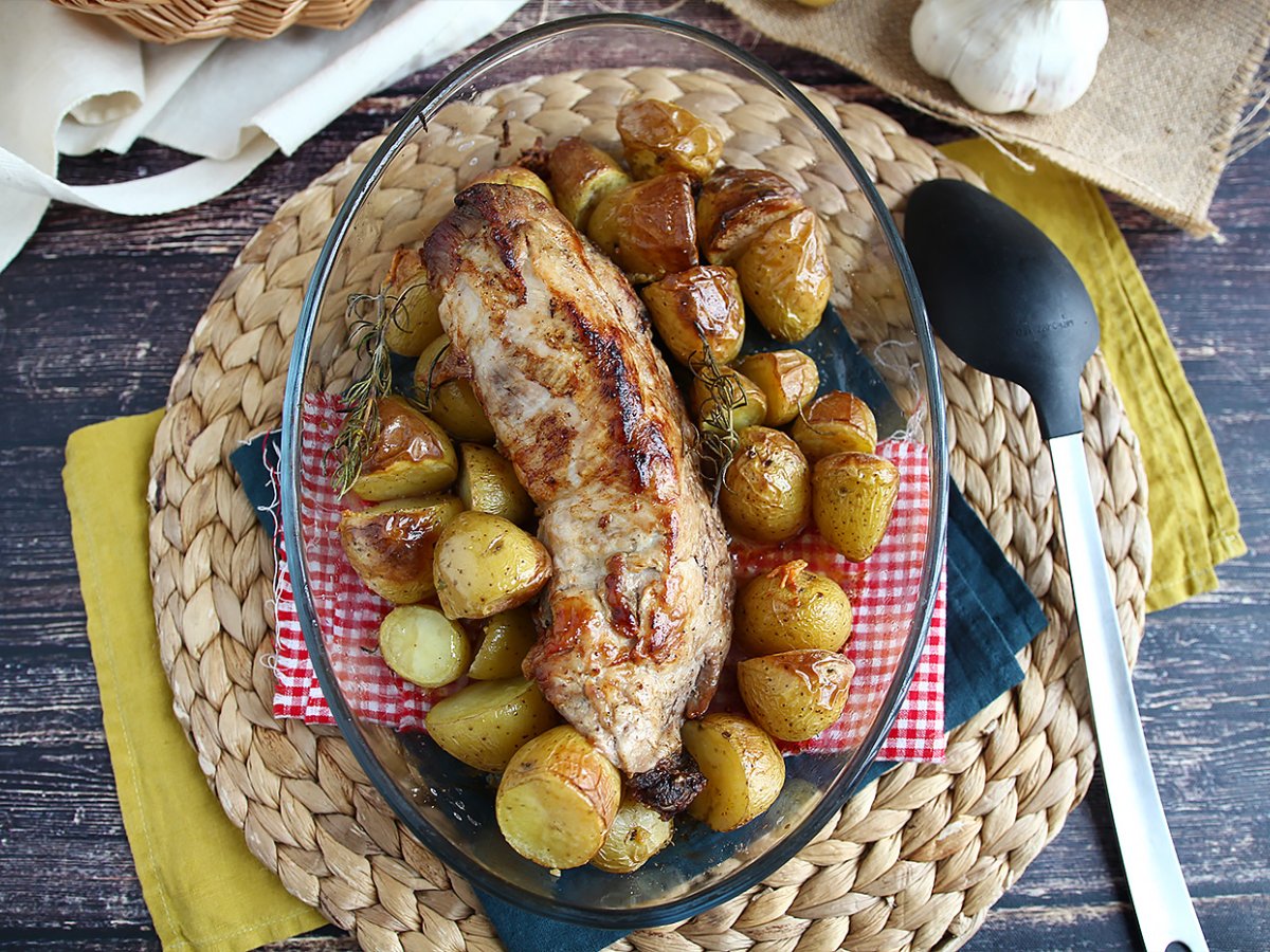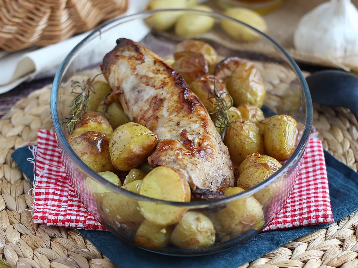 Un piatto facile e gustoso, ottimo per il pranzo della domenica ma anche se avete ospiti a cena. Il filetto di maiale viene prima rosolato velocemente in padella con del burro, poi viene cotto in forno insieme alle patate e del rosmarino fresco. Seguite il procedimento dettagliato per una cottura perfetta, il filetto di maiale al forno conquisterà tutti!