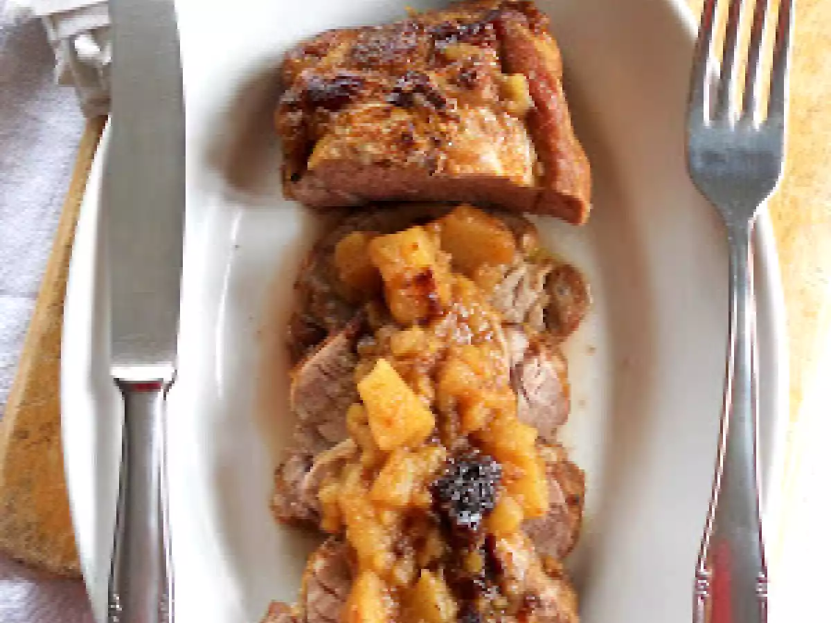 Filetto di maiale alle mele e prugne PrecedenteProssimo Portata principalefacile45 min1558 Kcal Invia questa ricetta ad un amico Stampa la ricetta Contatta l'autore della Ricetta Pubblica la foto di questa ricetta Ingredienti 2 600 g filetto di maiale 5 mele 10 prugne secche 50 g burro 1 stecca di cannella olio evo sale pepe Costo stimato: 8.46Euros€ (4.23€/Porzioni)