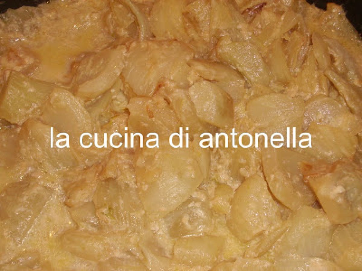 Dopo alcuni minuti abbassare la fiamma e sempre mescolando continuare a rosolare. Mettete un coperchio e fate attenzione che non si attacchino, mescolare sempre.- Quando vi sembrera' che' non e' piu' possibile rosolare , altrimenti si bruciano, ricoprirli con il latte. Salate.