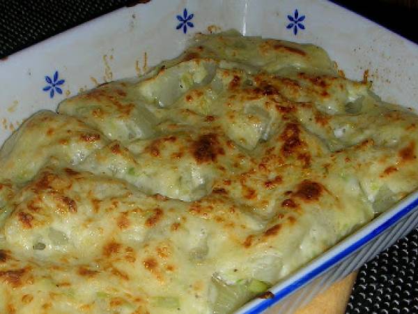 Finocchi alla crema di porri vota adesso Portata principalefacile35 min Invia questa ricetta ad un amico Stampa la ricetta Contatta l'autore della Ricetta Pubblica la foto di questa ricetta Ingredienti 2 2 finocchi 1 porro 2 cucchiai di olio evo 1 cucchiaio raso di farina 200 ml di latte sale e pepe grana grattugiato 260 kCal per porzione