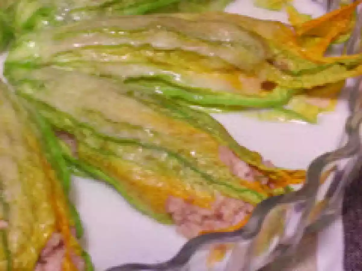 Fiori di zucca ripieni di prosciutto, mortadella e ricotta Portata principalefacile45 min Invia questa ricetta ad un amico Stampa la ricetta Contatta l'autore della Ricetta Pubblica la foto di questa ricetta Ingredienti 4 12 fiori di zucca 100 g prosciutto cotto 50 g mortadella 150 g ricotta di vacca sale pepe pan grattato parmigiano Costo stimato: 7.35Euros€ (1.84€/Porzioni)