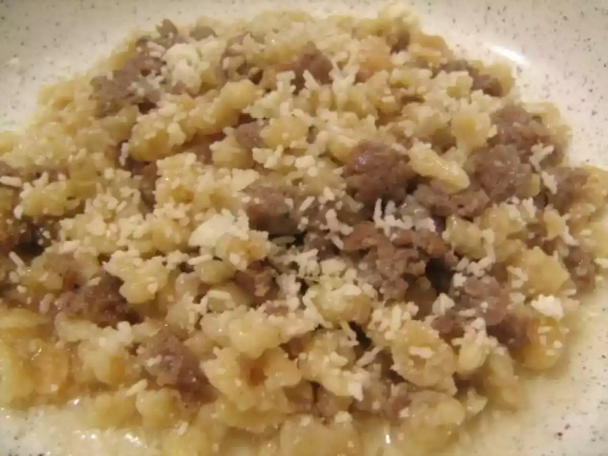 Fregola e salsiccia PrecedenteProssimo Portata principalefacile31 min542 Kcal Invia questa ricetta ad un amico Stampa la ricetta Contatta l'autore della Ricetta Pubblica la foto di questa ricetta Un piatto più che deliziosi!! Ingredienti 2 170 g di fregola 100 g di salsiccia fresca 1/2 cipolla 1 l circa di brodo vegetale olio Costo stimato: 2.28Euros€ (1.14€/Porzioni)