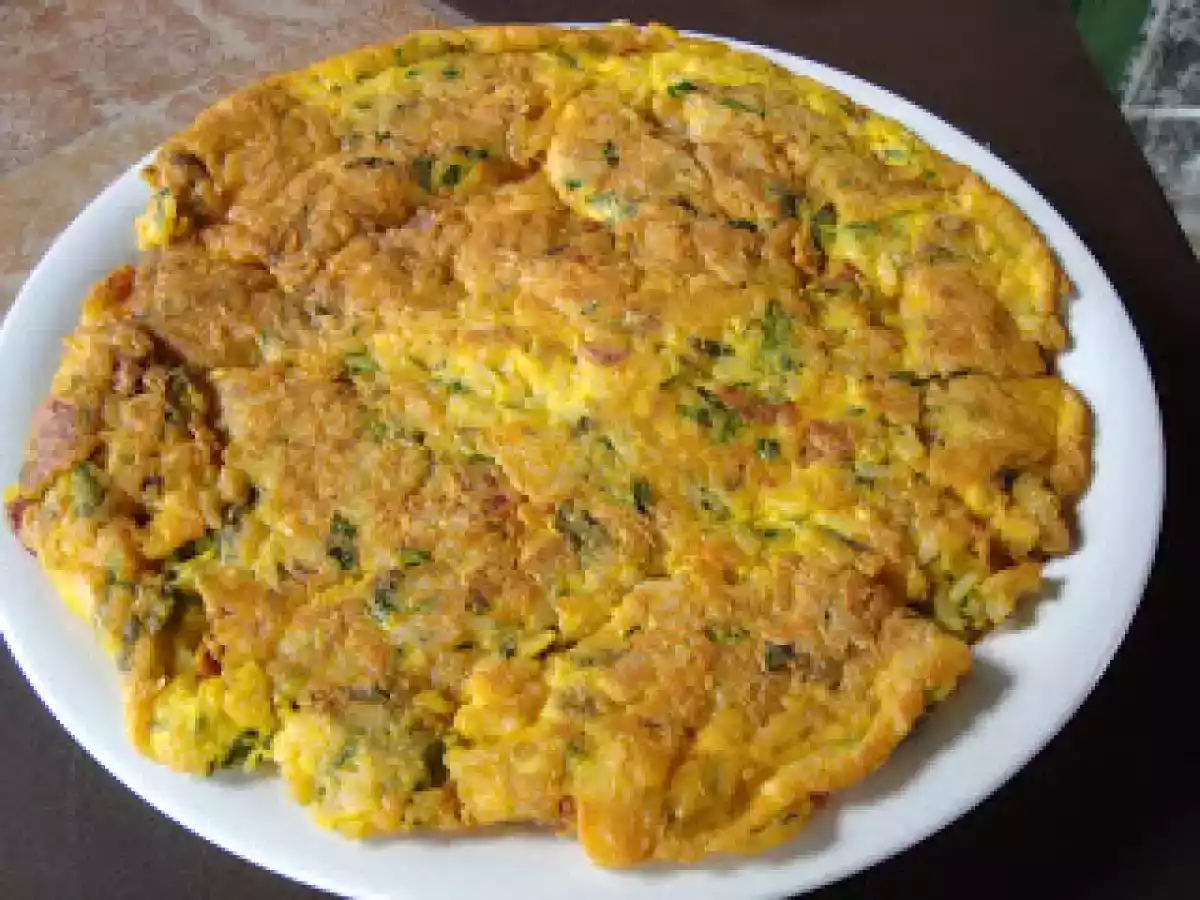 Frittata di asparagi e riso vota adesso PrecedenteProssimo Portata principalefacile50 min734 Kcal Invia questa ricetta ad un amico Stampa la ricetta Contatta l'autore della Ricetta Pubblica la foto di questa ricetta Ingredienti 2 8 uova riso rucola parmigiano grattugiato salame casereccio provola a dadini asparagi selvatici prezzemolo tritato olio extravergine di oliva sale e pepe