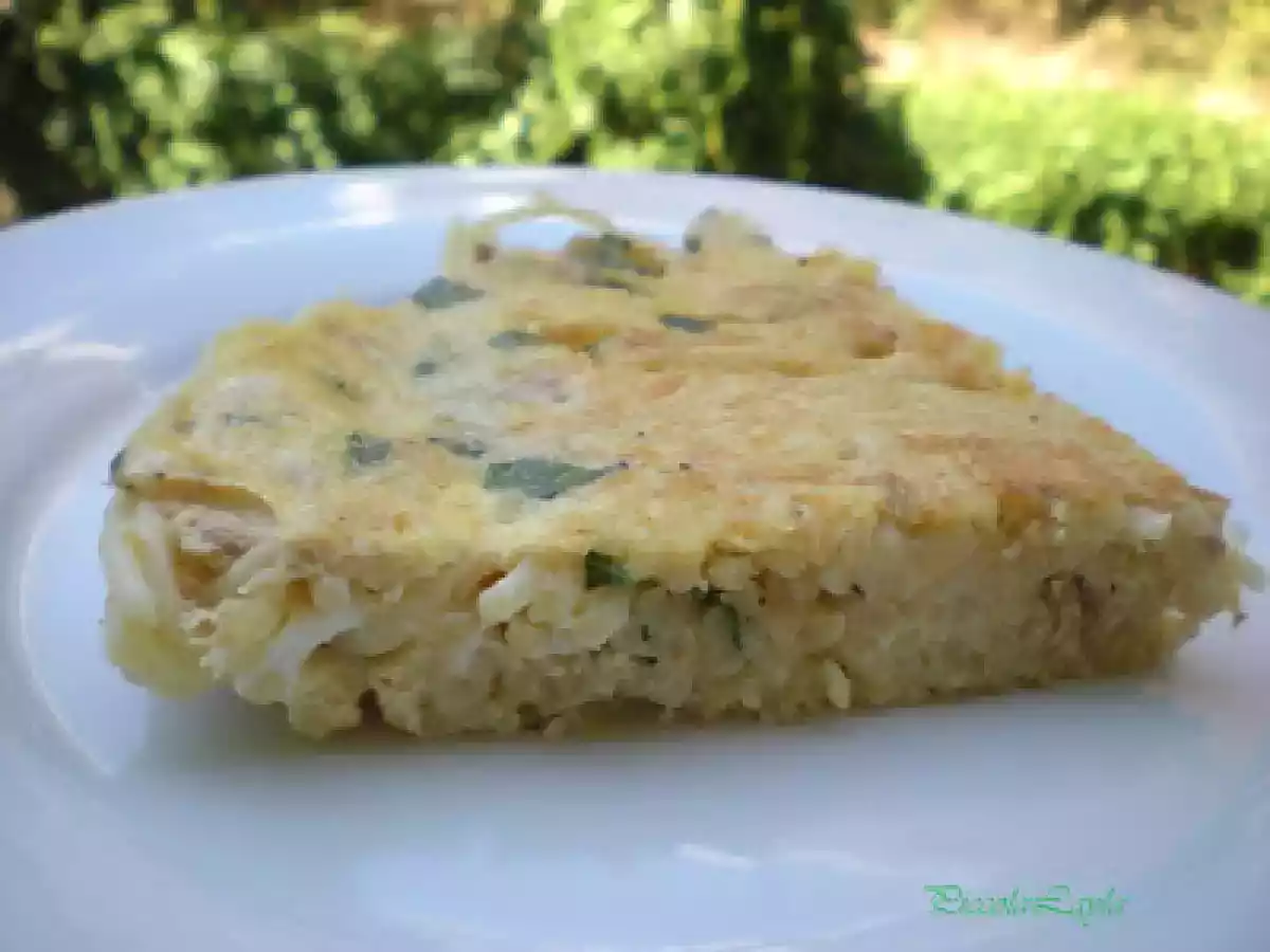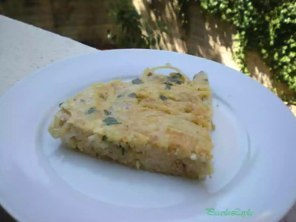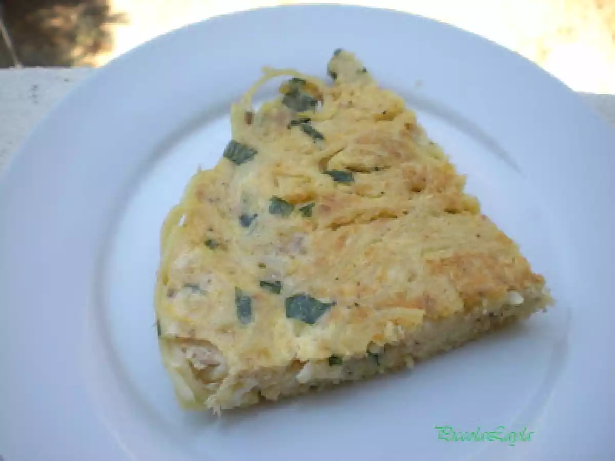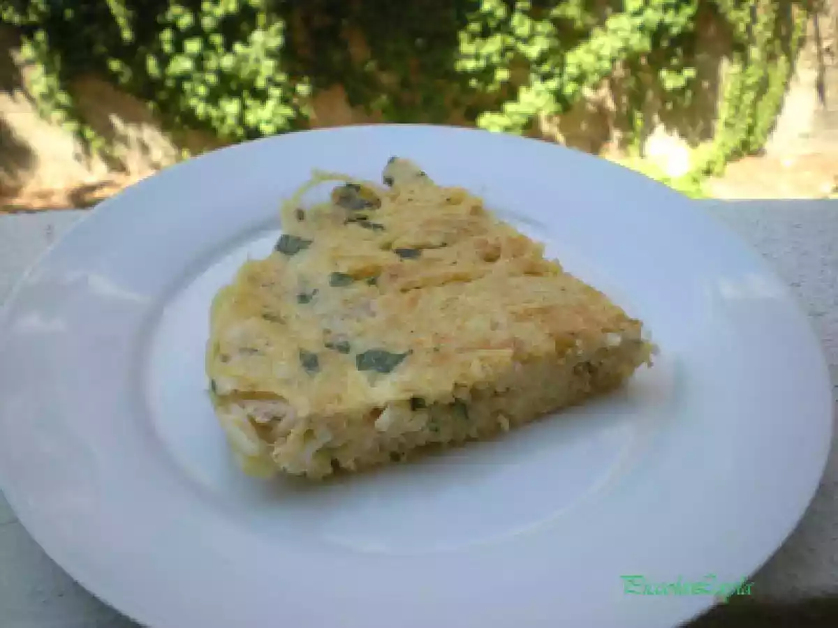 Frittata di spaghetti con tonno e mozzarella PrecedenteProssimo Portata principalefacile50 min Invia questa ricetta ad un amico Stampa la ricetta Contatta l'autore della Ricetta Pubblica la foto di questa ricetta Ingredienti 4 200 g di spaghetti cotti 1 scatoletta di tonno all olio d oliva 1 mozzarella piccola 1 ciuffo di prezzemolo 4 uova 4 cucchiai di formag grattug sale pepe nero