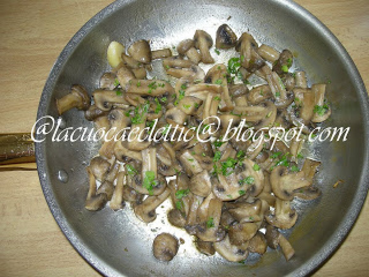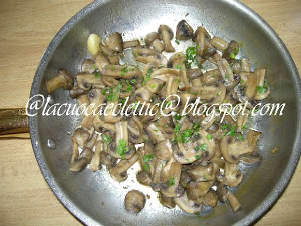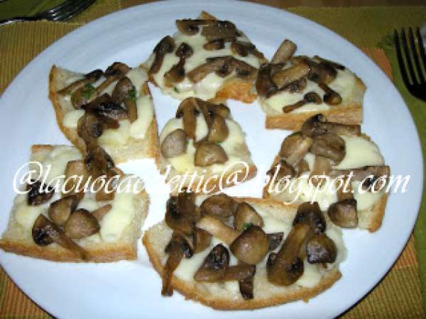 Funghi trifolati e bruschette vota adesso PrecedenteProssimo Portata principalefacile40 min Invia questa ricetta ad un amico Stampa la ricetta Contatta l'autore della Ricetta Pubblica la foto di questa ricetta Ingredienti 4 500 g di funghi champignon qualche fetta di pane scamorza olio extravergine d'oliva aglio prezzemolo rosmarino sale