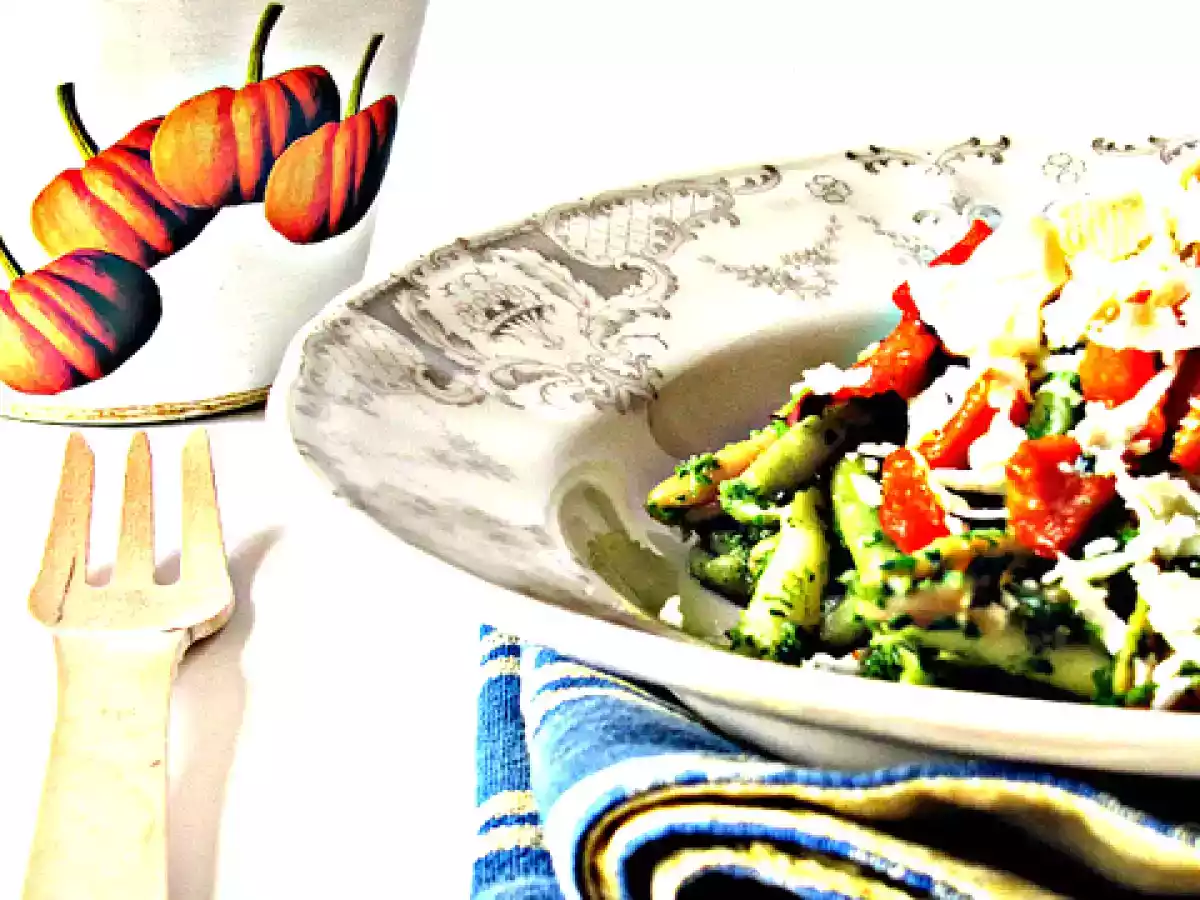 Fusilli al pesto di sedano e arachidi con dadolata di zucca arrostita al peperoncino vota adesso PrecedenteProssimo Portata principalefacile1 h 10 m965 Kcal Invia questa ricetta ad un amico Stampa la ricetta Contatta l'autore della Ricetta Pubblica la foto di questa ricetta Ingredienti 2 200 g di fusilli pugliesi 2-3 manciate di foglie di sedano 1 manciata di arachidi salate 300 g di zucca pesata con la buccia 1 peperoncino caprino stagionato qb olio extravergine di oliva novello sale pepe