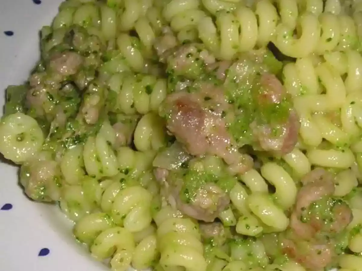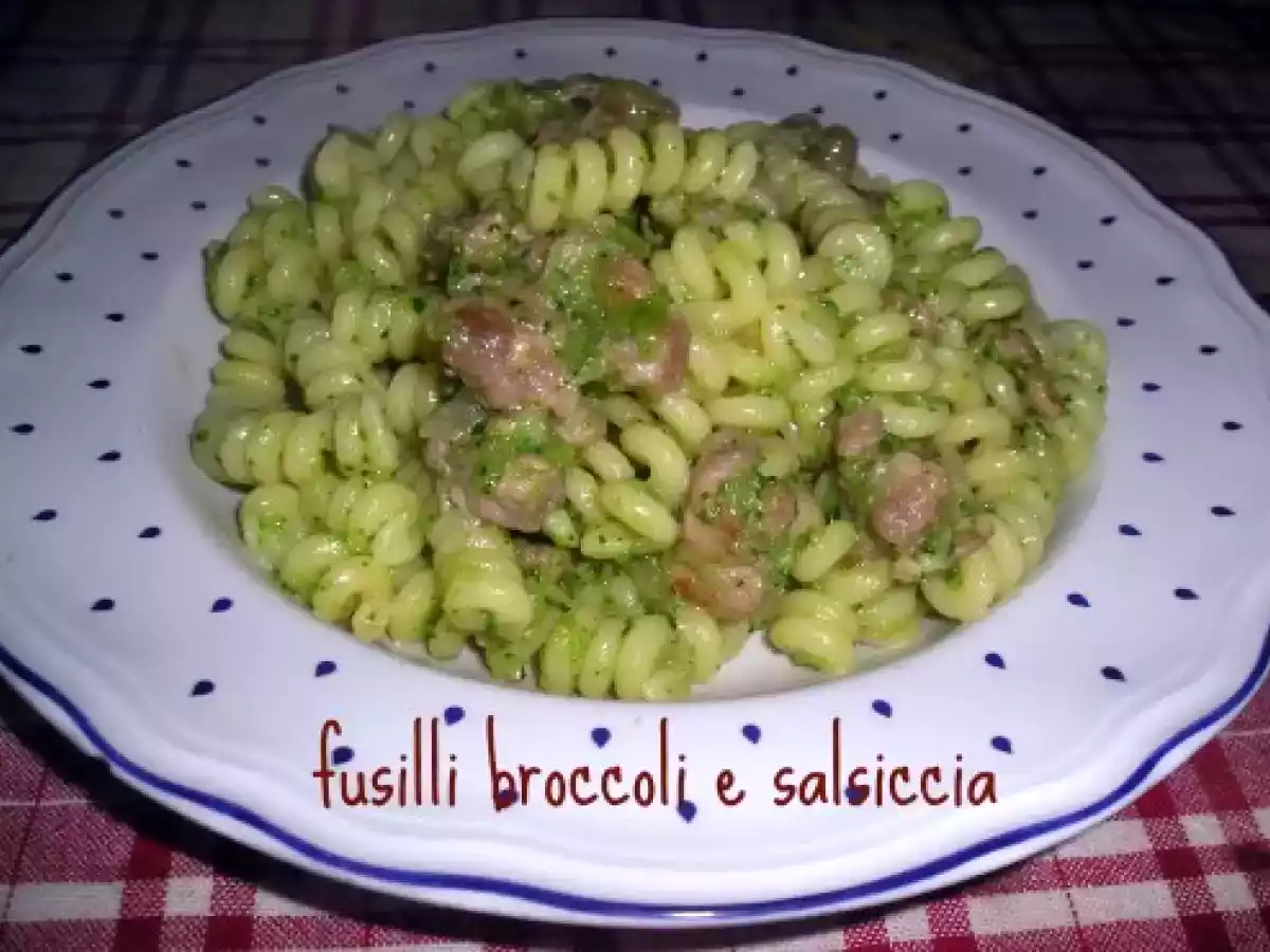 Fusilli broccoli e salsiccia PrecedenteProssimo Portata principalemedia40 min568 Kcal Invia questa ricetta ad un amico Stampa la ricetta Contatta l'autore della Ricetta Pubblica la foto di questa ricetta Concedetevi con questo gustoso piatto. Ingredienti 4 350 g pasta corta(fusilli) 600 g broccoli(anche congelati) 2 salsicce vino bianco aglio cipolla sale peperoncino olio d' oliva Costo stimato: 4.74Euros€ (1.18€/Porzioni)