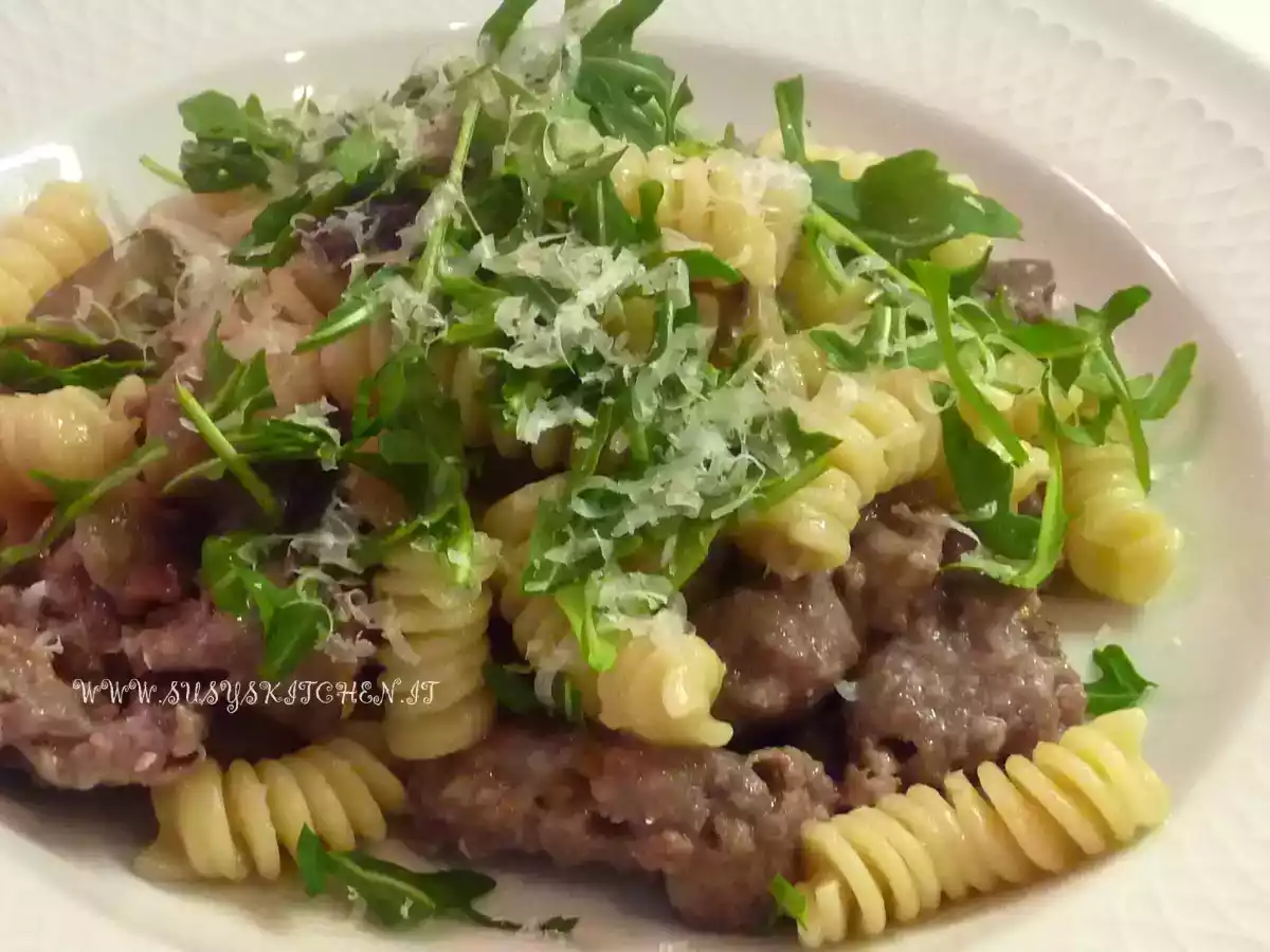 Fusilli melanzane salsiccia rucola PrecedenteProssimo Portata principalefacile25 min Invia questa ricetta ad un amico Stampa la ricetta Contatta l'autore della Ricetta Pubblica la foto di questa ricetta Ingredienti 2 200 gr di fusilli 1 melanzana 2 salsiccie 1 cipolla 2 manciate di rucola 1 cucchiaio di ricotta parmiggiano vino bianco per sfumare sale pepe q.b olio e.v.o.