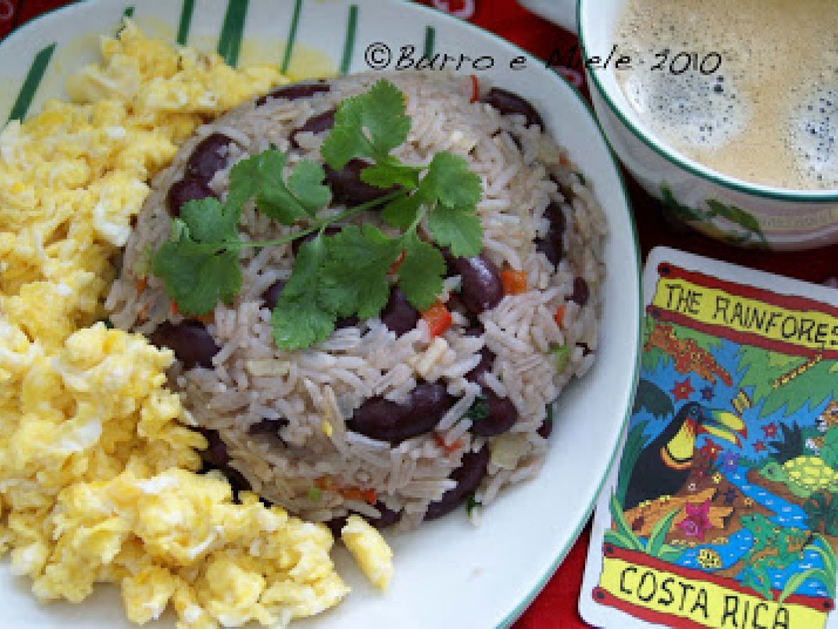 Gallo pinto, la colazione del costa rica. Portata principalefacile1 ora677 Kcal Invia questa ricetta ad un amico Stampa la ricetta Contatta l'autore della Ricetta Pubblica la foto di questa ricetta Ingredienti 2 1/2 peperone rosso o verde tritato 1 gambo di sedano tritato 1 cipolla tritata 2 spicchi d'aglio tritati un mazzetto di coriandolo tritato 200 g di riso grano lungo 150 g di faglioli neri o rossi olio sale Costo stimato: 1.89Euros€ (0.94€/Porzioni)