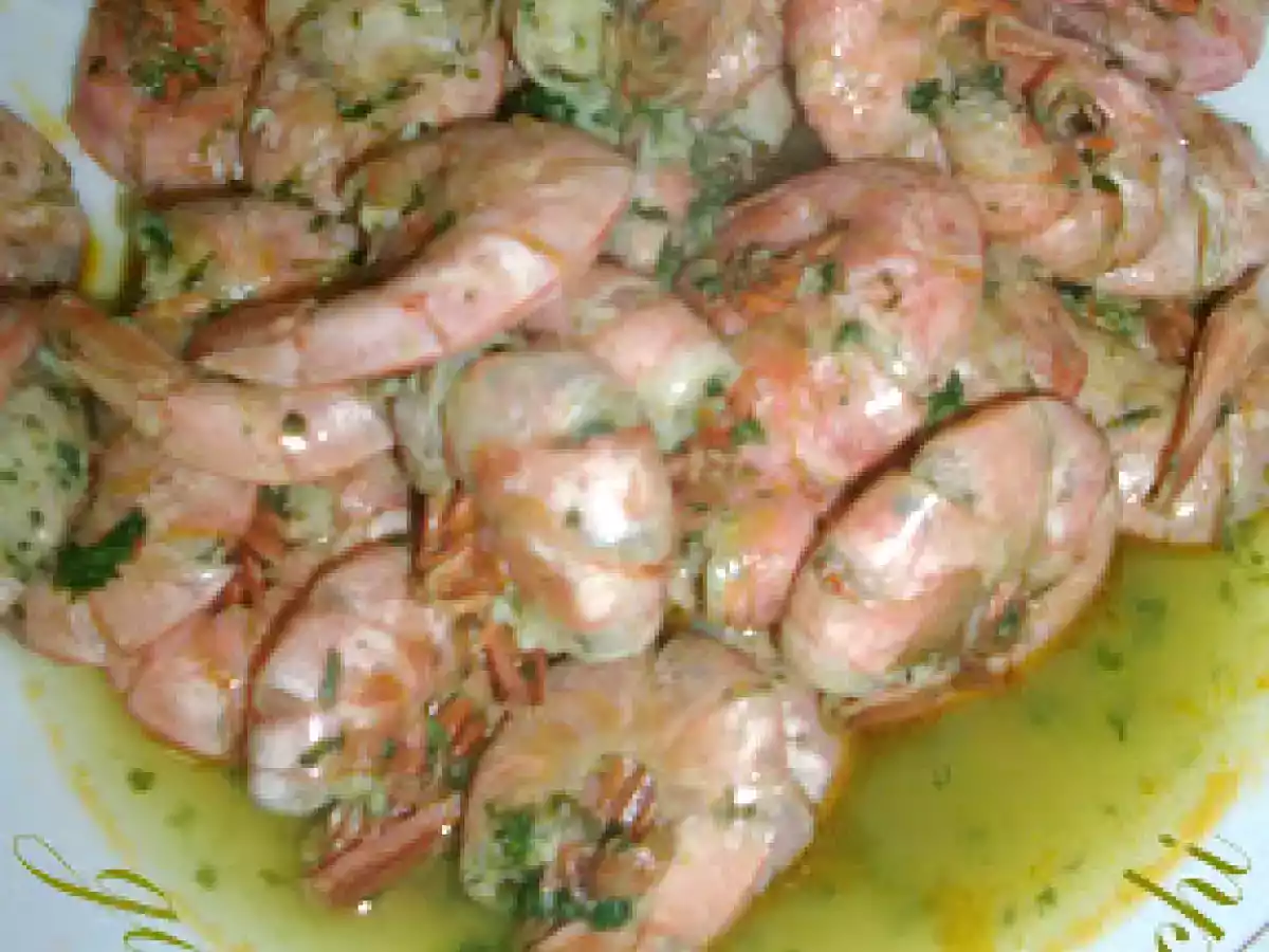 Gamberoni ubriachi Portata principalefacile30 min251 Kcal Invia questa ricetta ad un amico Stampa la ricetta Contatta l'autore della Ricetta Pubblica la foto di questa ricetta Ingredienti 4 500 g di gamberoni 40 g di olio extra vergine d'oliva 1 spicchio di aglio 1 mazzolino di prezzemolo 50 g di cognac 50 g di vino bianco secco 1 peperoncino piccante sale & pepe