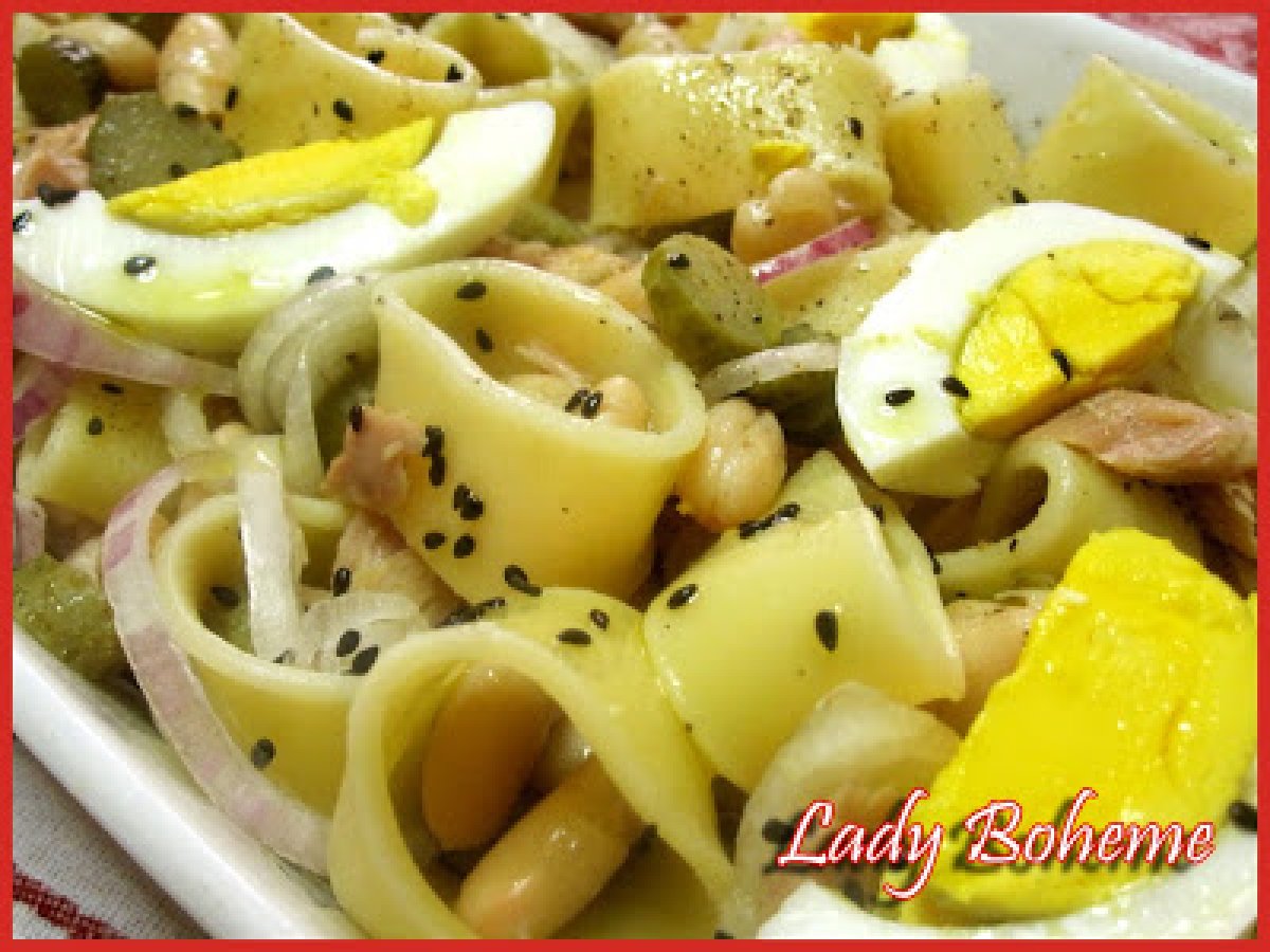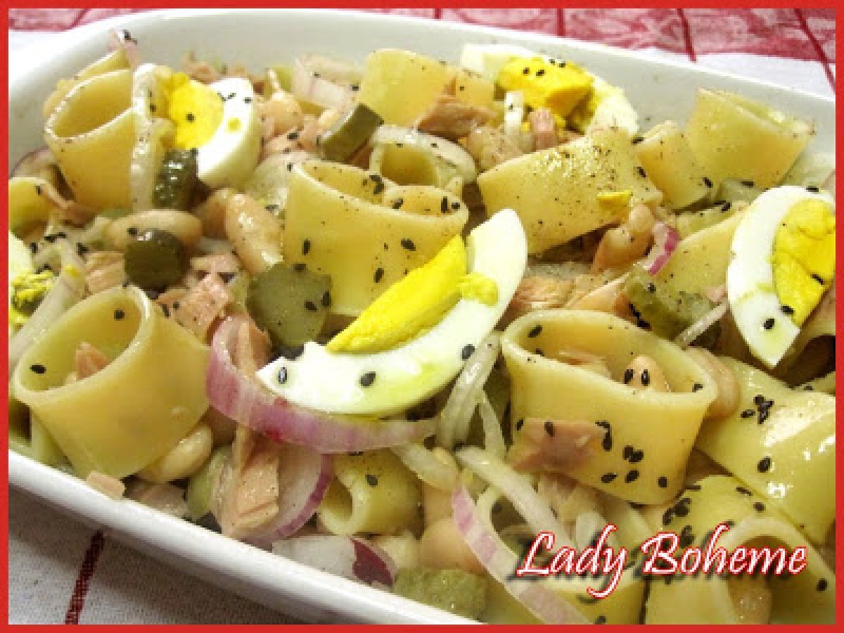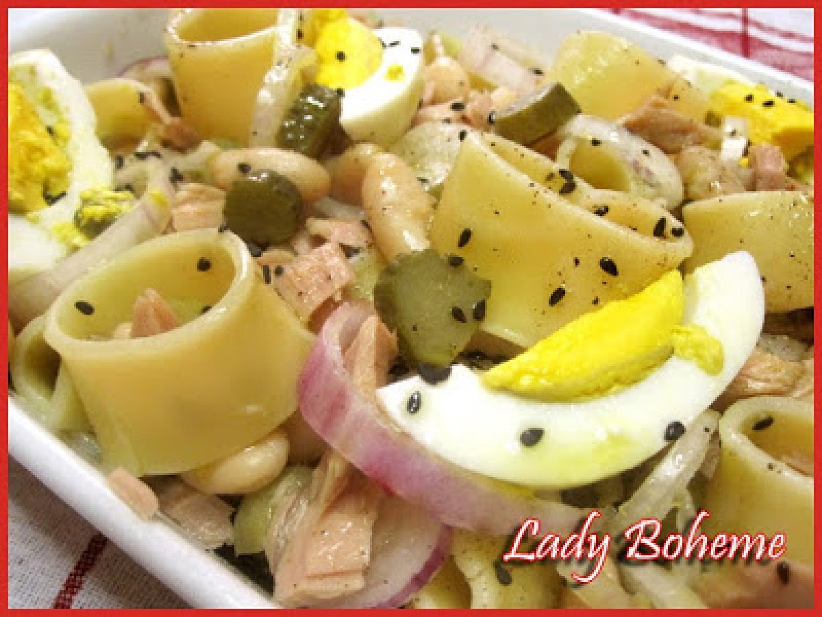 Giardino di boboli: la "vasca dell'isola" e la pasta fredda con fagioli cannellini... vota adesso PrecedenteProssimo Portata principalefacile35 min Invia questa ricetta ad un amico Stampa la ricetta Contatta l'autore della Ricetta Pubblica la foto di questa ricetta Ingredienti 4 350 gr di anelli 350 gr di fagioli cannellini lessati 250 gr di tonno sott'olio una cipolla di tropea 4 uova sode semi di sesamo nero qb cetriolini sott'aceto qb olio extravergine di oliva sale e pepe nero