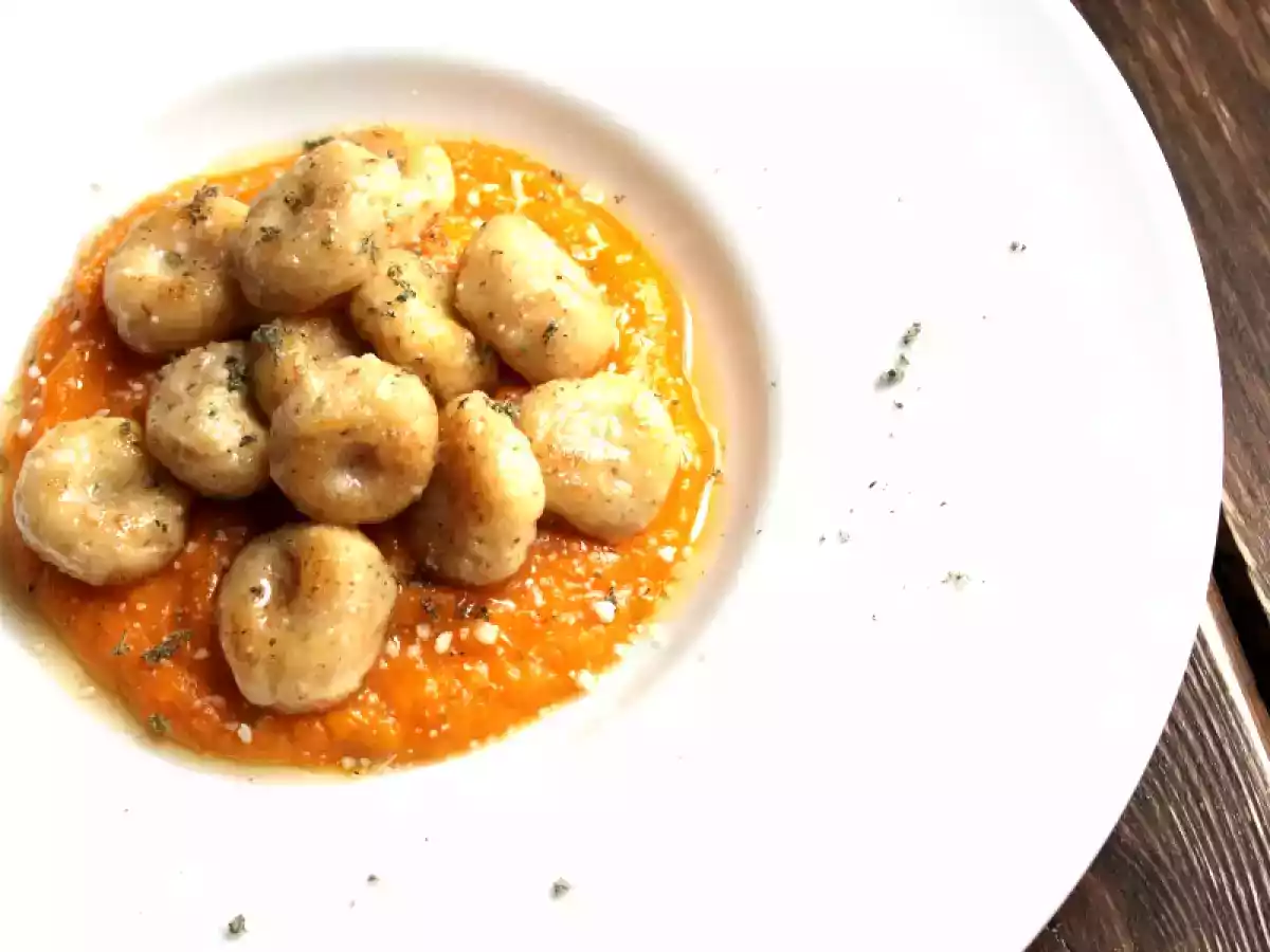 Gnocchetti di ricotta al profumo di salvia su vellutata di zucca