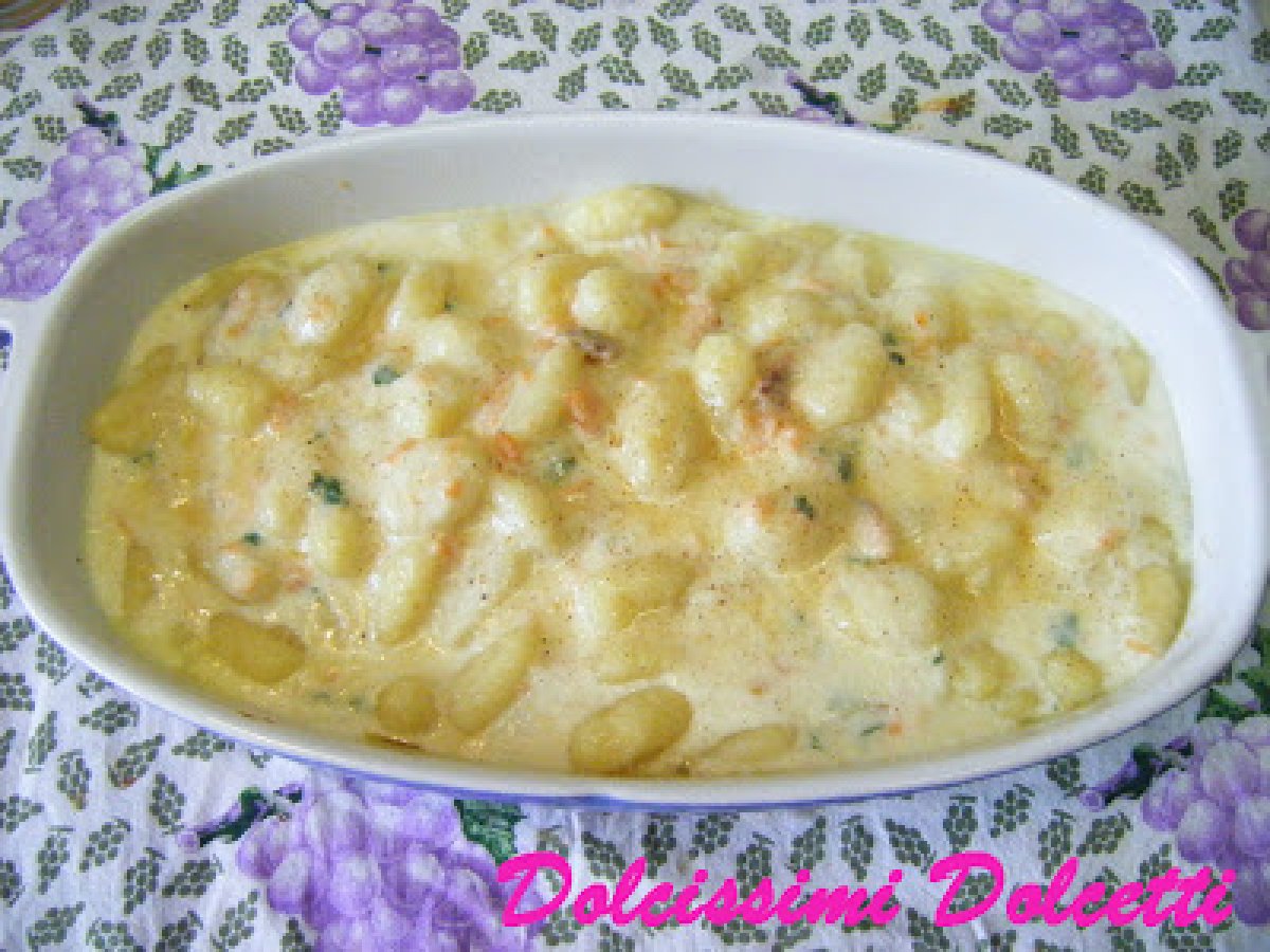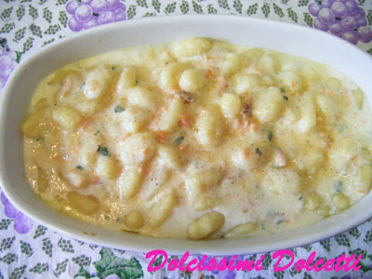 Gli gnocchi al forno con salmone affumicato sono un piatto elegante e dal gusto irresistibile, ideale per sorprendere i tuoi ospiti con una ricetta semplice ma di grande effetto. La consistenza morbida degli gnocchi si sposa alla perfezione con il sapore intenso del salmone affumicato, mentre la besciamella cremosa, arricchita da un tocco di noce moscata, unisce tutti gli ingredienti in modo armonioso. Perfetti per un pranzo in famiglia o una cena speciale, questi gnocchi diventano ancora più invitanti grazie alla gratinatura di parmigiano, che dona una crosticina dorata e croccante. Con pochi ingredienti e un procedimento facile, porterai in tavola un piatto che conquisterà tutti al primo morso