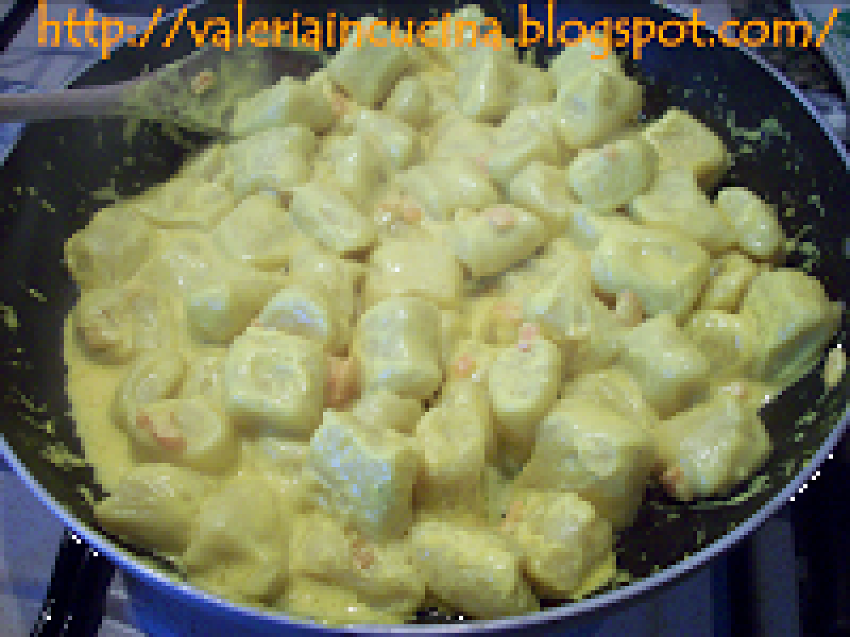 Gnocchi alla crema di zafferano PrecedenteProssimo Portata principalefacile50 min Invia questa ricetta ad un amico Stampa la ricetta Contatta l'autore della Ricetta Pubblica la foto di questa ricetta Ingredienti 2 gnocchi di patate 1 carota 1 cipolla fresca piccola 1 pezzetto di sedano 1 philadelphia 1 bustina di zafferano sale pepe verde un mestolo di acqua calda parmigiano reggiano grattugiato Costo stimato: 3.85Euros€ (1.93€/Porzioni)