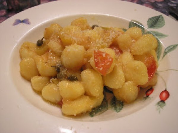 Gnocchi con capperi e pomodorini vota adesso Portata principalefacile40 min232 Kcal Invia questa ricetta ad un amico Stampa la ricetta Contatta l'autore della Ricetta Pubblica la foto di questa ricetta Ingredienti 4 320 g di gnocchi 1 peperone giallo 20 g di capperi dissalati 12 pomodorini basilico 1 scalogno 40 g di parmigiano 1 dado per brodo vegetale sale olio