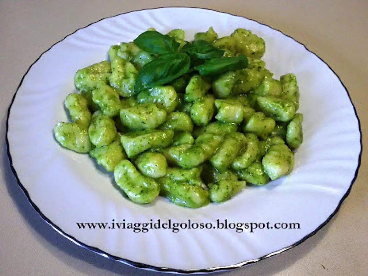 Gnocchi con inno al pesto PrecedenteProssimo Portata principalefacile45 min Invia questa ricetta ad un amico Stampa la ricetta Contatta l'autore della Ricetta Pubblica la foto di questa ricetta Ingredienti 4 Per gli gnocchi: 4 patate di media grandezza 1 uovo 300 g di farina 00 sale Per il pesto genovese: 3 mazzi di basilico genovese di Prà 6 cucchiai. di parmigiano grattugiato 2 cucchiai di pecorino toscano 1 cucchiaio di pinoli 1 spicchio d'aglio sale grosso ½ bicchiere d'olio extravergine d'oliva ligure