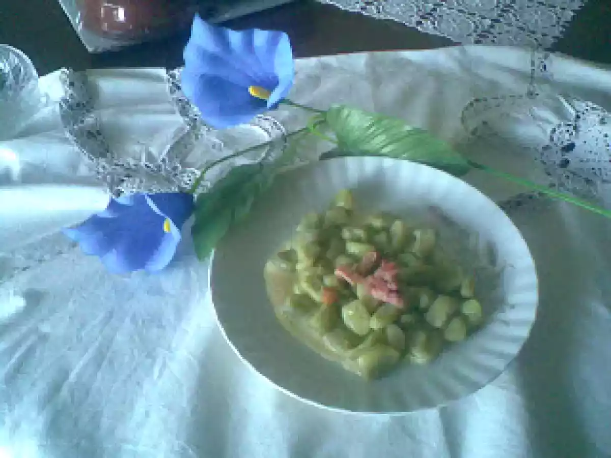 Gnocchi di fave in crema di pecorino e pancetta croccante