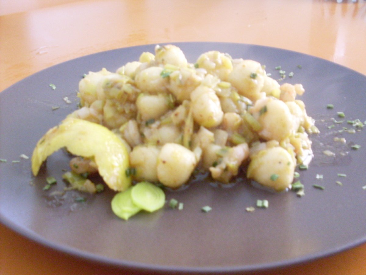 Gnocchi di patate con porri, gamberetti, spezie e limone