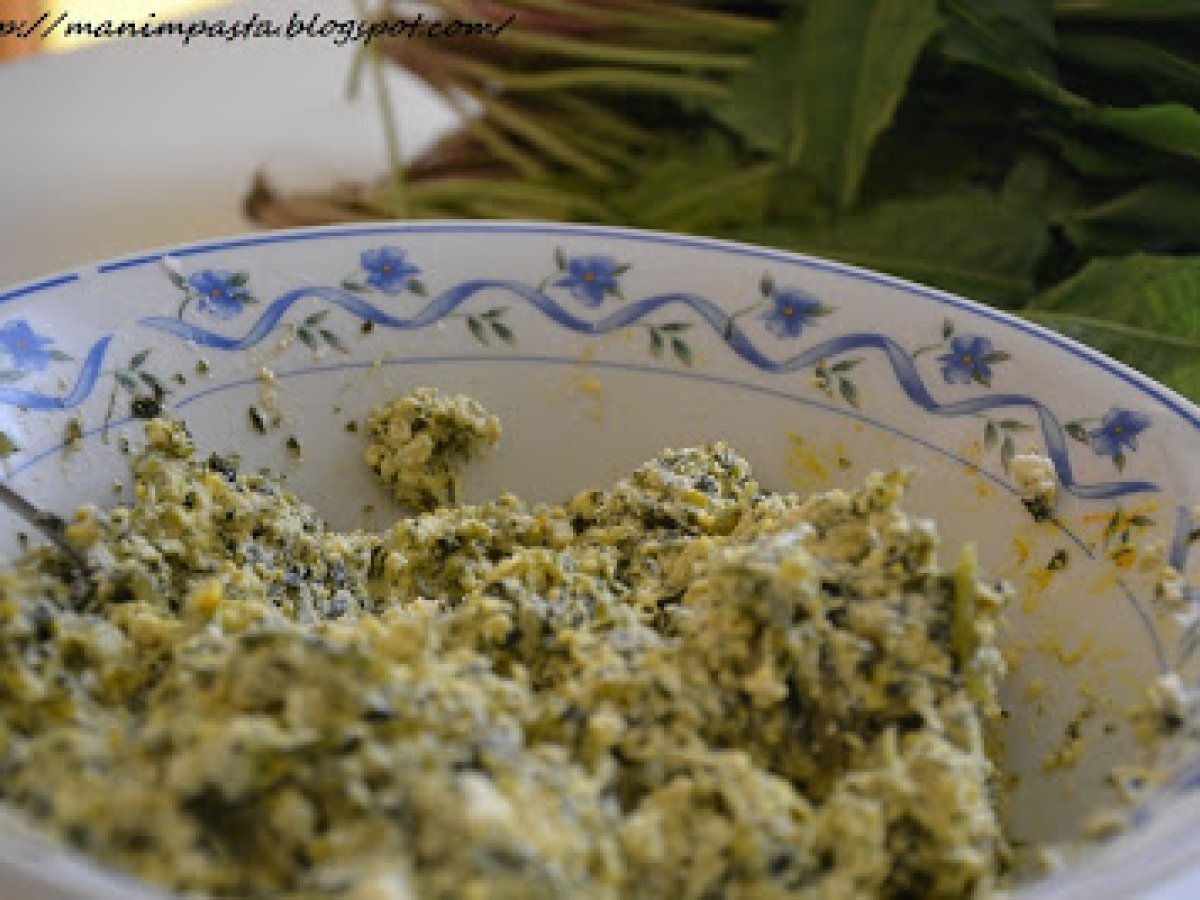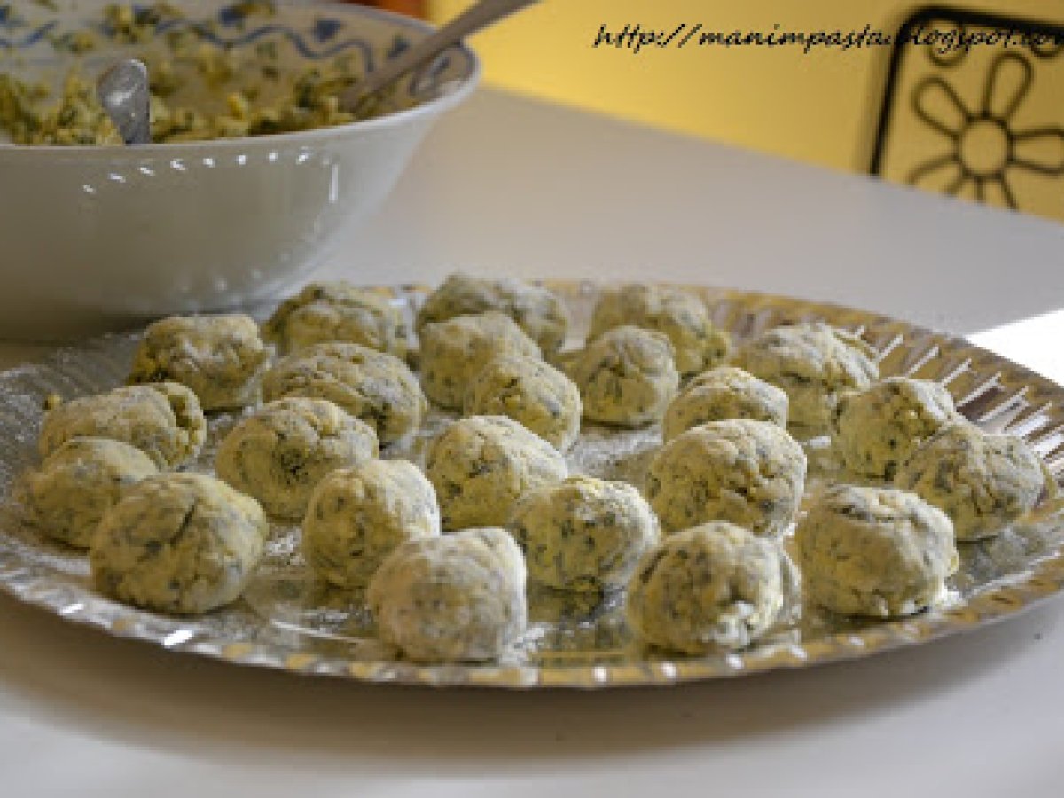Gnocchi di ricotta alle cicorie selvatiche PrecedenteProssimo Portata principalefacile1 ora Invia questa ricetta ad un amico Stampa la ricetta Contatta l'autore della Ricetta Pubblica la foto di questa ricetta Ingredienti 4 200 grammi di ricotta pecorina freschissima una manciata di cicorie lessate ben strizzate un cucchiaio abbondante di farina un uovo intero mezza bustina di zafferano sale q.b. farina per l'infarinatura dei gnocchi Per il sugo : cipolla tritata salsiccia piccante a dadini 5 o 6 cucchiai di passato di pomodoro sale olio extravergine di oliva pecorino sardo grattugiato per condire