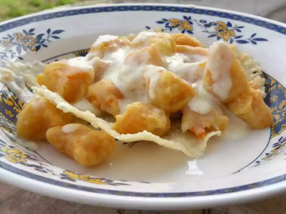 Gnocchi di zucca in cialda con fonduta di montasio dop PrecedenteProssimo Portata principalefacile1 h 10 m Invia questa ricetta ad un amico Stampa la ricetta Contatta l'autore della Ricetta Pubblica la foto di questa ricetta Ingredienti 6 Patate 1 kg e mezzo Zucca 1 kg e mezzo Farina bianca "tipo 00" 200g Uova 1 Parmigiano 2 cucchiai per gli gnocchi 4 cucchiai per la cialda Sale pepe e noce moscata q.b. Montasio 200 g circa per fonduta e cialda Latte 500 ml circa