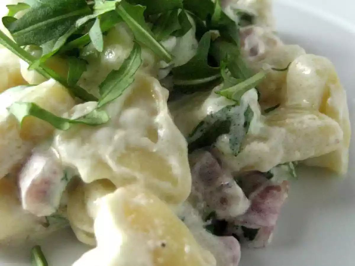 Gnocchi speck e rucola per san valentino vota adesso Portata principalefacile45 min Invia questa ricetta ad un amico Stampa la ricetta Contatta l'autore della Ricetta Pubblica la foto di questa ricetta Ingredienti 4 3 patate piccole circa 250/300 g farina circa 150 g un pizzico di sale 30 g di burro 100 g di speck in una sola fetta 100 ml di panna rucola circa un mazzetto secondo il proprio gusto pepe sale 30 g parmigiano