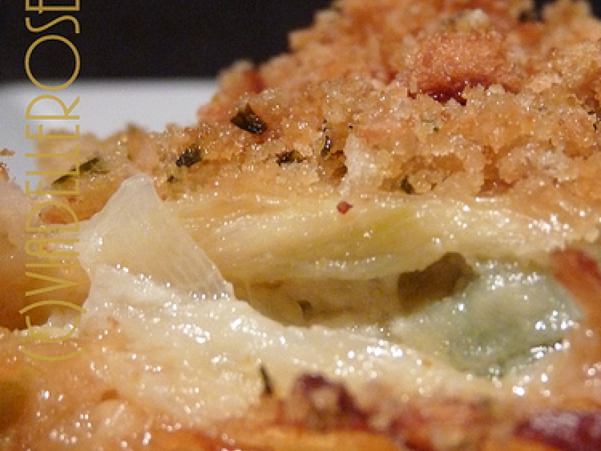 Gratin di porri PrecedenteProssimo Portata principalefacile1 h 30 m299 Kcal Invia questa ricetta ad un amico Stampa la ricetta Contatta l'autore della Ricetta Pubblica la foto di questa ricetta Ingredienti 6 6 porri 250 g circa di besciamella 120 g di formaggio brie 80 g di parmigiano grattuggiato 2 uova olio d'oliva 2 cucchiai di pangrattato un mazzetto di prezzemolo (per un cucchiaio circa ) un mazzetto di erba cipollina (per un cucchiaio circa) sale e pepe