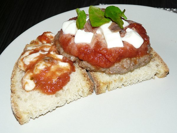 Hamburger alla pizzaiola Portata principalefacile25 min Invia questa ricetta ad un amico Stampa la ricetta Contatta l'autore della Ricetta Pubblica la foto di questa ricetta Ingredienti 2 due hamburger di manzo olio, sale, pepe mozzarella due alici polpa di pomodoro una o due foglioline di basilico