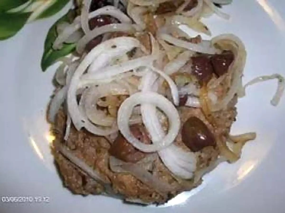 Hamburger di vitello con cipollotto e olive taggiasche Portata principalemedia25 min Invia questa ricetta ad un amico Stampa la ricetta Contatta l'autore della Ricetta Pubblica la foto di questa ricetta Ingredienti 4 Ingredienti x 4 persone: 4 hamburger di vitello qualche cucchiaio di olive taggiasche snocciolate 2 cipollotti olio di oliva extrav. sale