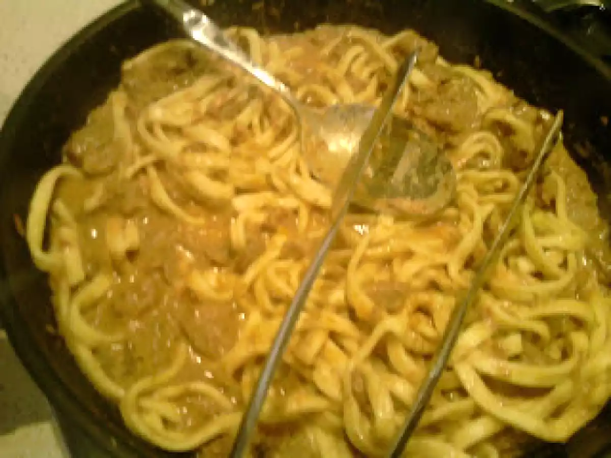 se necessario un pochino di acqua per completare la cottura. - Se volete preparare un primo piatto come scelto, cuocete in abbondante acqua salata la pasta, poi scolatela al dente, direttamente nella padella in cui avrete messo il sugo, aggiungete un cucchiaio di panna e saltatela fino a completarne la cottura.