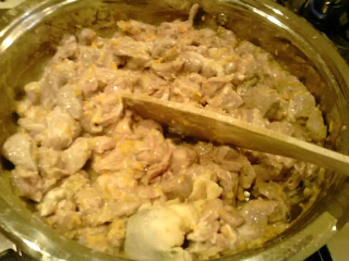 - Dopo aver lasciato marinare la carne nel latte e spezie per almeno 1 giorno e 1 notte, risciacquate e asciugate bene e infarinate leggermente la 1/2 dei pezzettini.