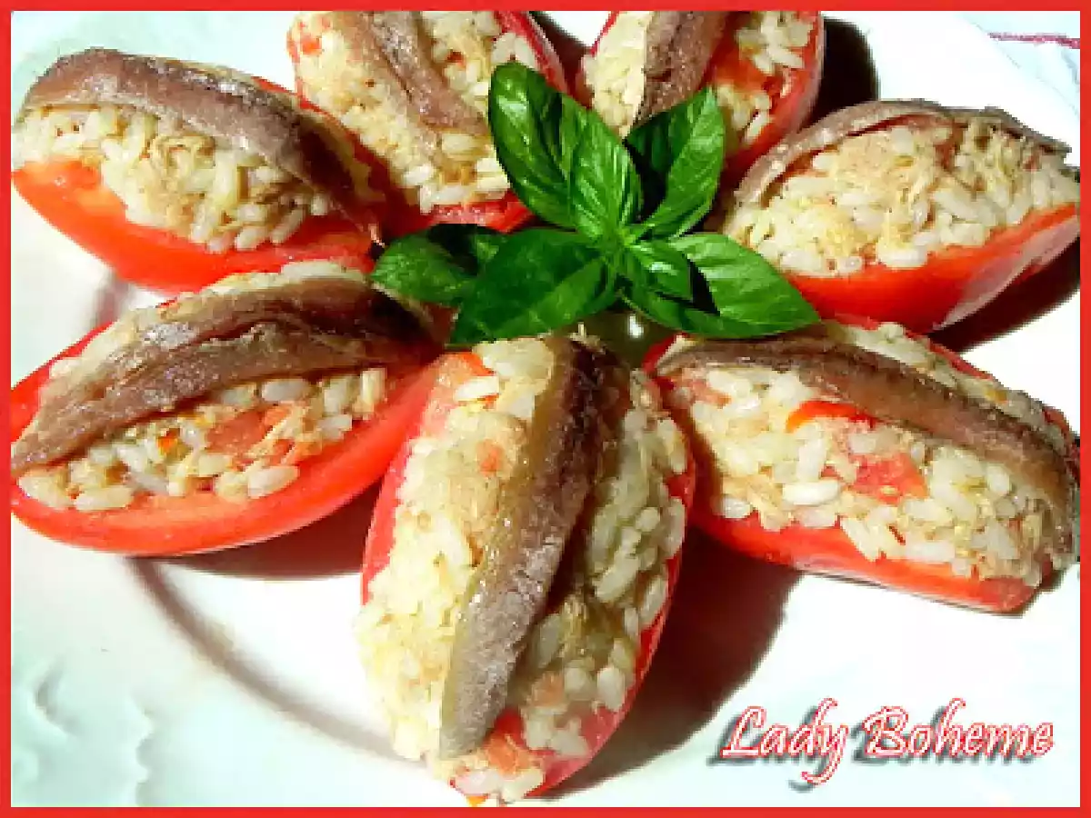 Il fascino felino & le barchette di pomodoro ripiene vota adesso PrecedenteProssimo Portata principalefacile45 min342 Kcal Invia questa ricetta ad un amico Stampa la ricetta Contatta l'autore della Ricetta Pubblica la foto di questa ricetta Ingredienti 2 Pomodori San Marzano riso per insalate bollito ventresca di tonno sott'olio uova sode qb cipolline bianche sott'aceto sale pepe nero olio extravergine di oliva filetti di acciughe sott'olio Costo stimato: 2.32Euros€ (1.16€/Porzioni)
