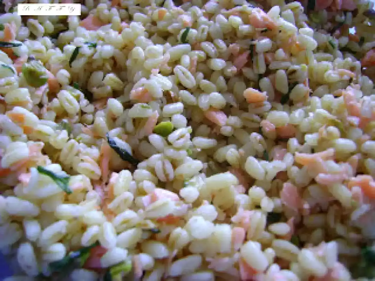 Insalata di grano e salmone vota adesso PrecedenteProssimo Portata principalefacile30 min Invia questa ricetta ad un amico Stampa la ricetta Contatta l'autore della Ricetta Pubblica la foto di questa ricetta Ingredienti 2 100 g di salmone affumicato 140 g di grano erba cipollina sale 15 g di burro manciata di pistacchi tritati