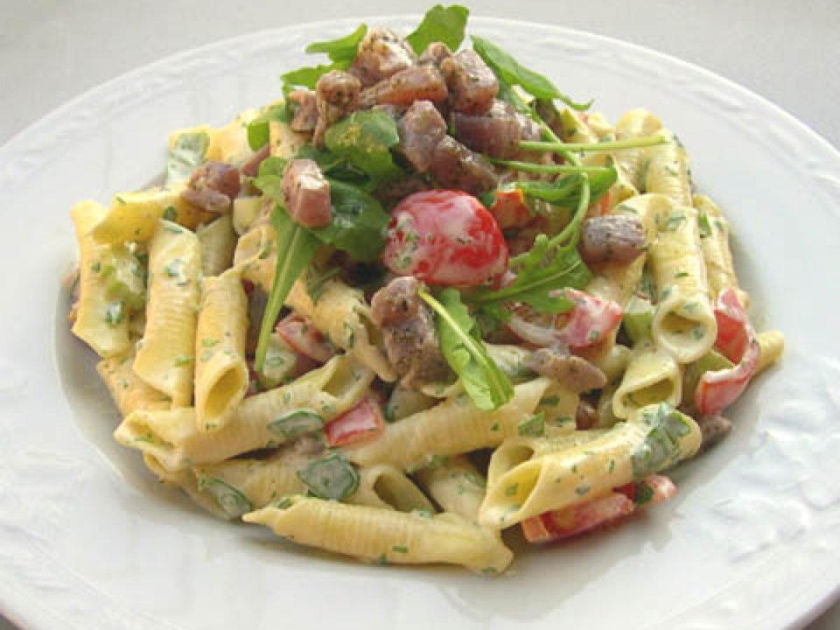 Insalata di pasta al profumo di rucola e tonno marinato