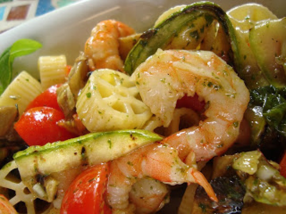 Insalata di pasta con verdure e gamberi PrecedenteProssimo Portata principalefacile50 min275 Kcal Invia questa ricetta ad un amico Stampa la ricetta Contatta l'autore della Ricetta Pubblica la foto di questa ricetta Una ricetta semplice,veloce e molto gustosa. Ingredienti 2 pasta ruote zucchine grigliate peperoni a listerelle gamberetti sbollentati melanzane fritte a dadini pomodorini pachino pesto di basilico prezzemolo olio e aglio cipolla tagliate a rondelle sale e peperoncino piccante Costo stimato: 2.75Euros€ (1.37€/Porzioni)